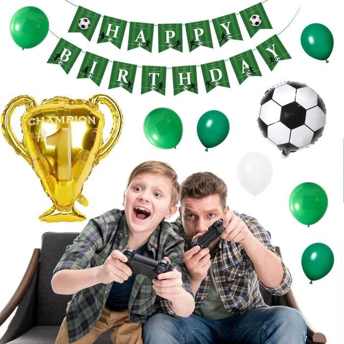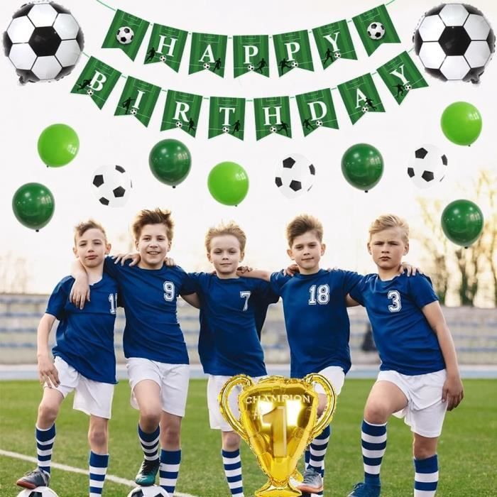 Ballons. (12) · Accessoires de déguisement. (11) · Guirlandes. (5) · Perruques. (4) · Chapeaux. (3) · Bannières. (3) · Drapeaux. (3) · Serviettes. (2 ⚽ 11ème Décoration d'anniversaire de football : ce kit de décoration de football comprend 2 ballons numériques verts en aluminium de 81 cm, 4 ballons en aluminium de 45 cm, 2 ballons en aluminium étoile de 45 cm, 6 ballons à motif de football, 6 ballons en latex vert foncé, 6 ballons en latex vert, 1 bannière de football Happy Birthday, ruban vert Transformez la fête d'anniversaire de votre petit champion avec notre kit de décoration d'anniversaire football de 181 pièces ! Decoration Anniversaire Marve 3 Ans, 39 Pièces Kit Décoration... Ballon 8 Ans Décorations De Fête De Football Pour Garçons Filles Enfants Adultes Anniversaire Decoration Anniversaire Foot kit de décoration d'anniversaire football 181 pièces avec assiettes, tasses, nappe, ballons et bannières - Dragée d'amour