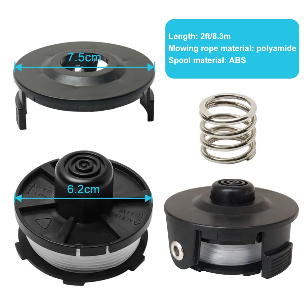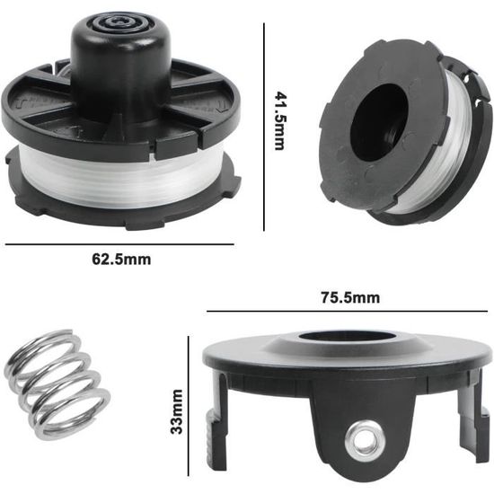 Matériau de la bobine : nylon + ABS., Guide d'instructions : 1., Relâchez les languettes pour enlever le couvercle et les ressorts., 2., Nettoyez toute ligne cassée ou débris et remplacez ou rembobinez la bobine. Bobine ABS et fil en nylon : la bobine de fil de rechange pour coupe-bordure a été fabriquée en matériau brut de qualité supérieure, 8,3 m/1,6 mm, bobine ABS assez robuste, corde en nylon flexible, assez solide pour une longue durée de vie Veuillez lire le manuel d'instructions de l'outil pour plus d'informations de sécurité avant d'utiliser cet accessoire. Tête De Débroussailleuse Pour Makita Tap&Go 195858-1 196146-9 Dur181Z Makita 196146-9 - Fils pour débroussailleuse | à partir de 4,68 € | Comparer les prix avec ! ✓ Conseils d'achat ✓ Comparatifs ✓ Avis & Tests... Bobines De Rechange Pour Débroussailleuse M Akita 1,6 Mm X 8,3 M Attention : toujours porter une protection oculaire. Contenu de l'emballage : 10 bobines de fil pour débroussailleuse 196146-9, 1 capuchon 195858-1 et 1 ressort 231352-0 Précautions d'utilisation : veuillez porter une protection oculaire et un pantalon long lors de l'utilisation de ce produit pour éviter les blessures causées par les lignes renversées. Bobines de rechange M Akita compatibles avec les coupe-bordures M Akita 18 V DUR181Z / DUR181RF / DUR181 Le produit ne convient que pour les jeunes herbes.