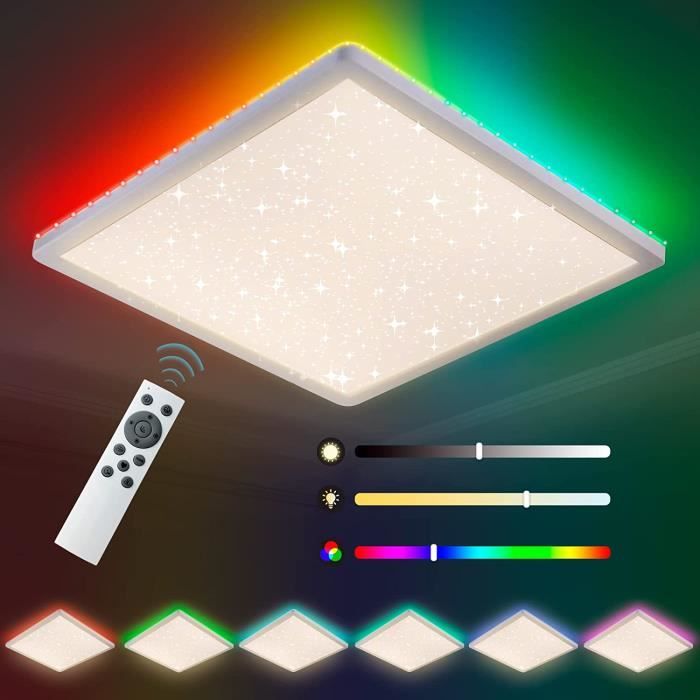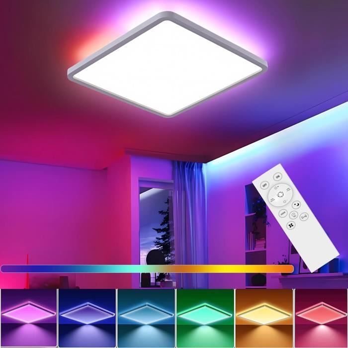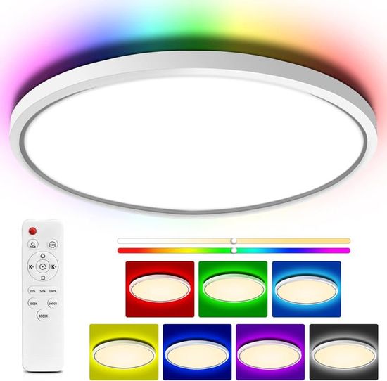 En raison de la transmission lumineuse plus élevée, la lumière est répartie uniformément dans toute la pièce et n'éblouit pas, protégeant ainsi les yeux de la lumière vive. 【Sans éblouissement/sans scintillement】Ce plafonnier plat a un indice de rendu des couleurs élevé de CRI85+. 【Plafonnier LED RGB】Les plafonniers LED RVB à intensité variable de 24 W ont 7 couleurs de lumière et 2 modes de cycle de couleur RVB (rapide/lent). La luminosité et la minuterie ne peuvent être réglées qu'à l'aide de la télécommande. 【Super lumineux et économie d'énergie】Le plafonnier LED de haute qualité fournit une puissance lumineuse de 24 W à économie d'énergie de 2400 lumens (100 lm/w) pour une lumière suffisante dans chaque pièce. Plafonnier LED RDGOOD 24 W à intensité variable RVB 7 éclairages RVB au clair de lune disponibles : rouge, vert, jaune, violet, bleu foncé, bleu ciel, bleu clair, vous pouvez facilement créer une variété d'ambiances pour répondre à vos besoins d'éclairage pour les films, la détente, les fêtes, les jeux, la danse, les rencontres et plus encore. Et cette lampe équivaut à une lampe à incandescence classique de 200 W et permet d'économiser plus de 90 % sur les coûts d'électricité. Éclairage LED idéal pour pièce humide pour salon, chambre, chambre d'enfant, salle à manger, bureau, atelier, cuisine, couloir / hall d'entrée, balcon, couloir, sous-sol, cage d'escalier, entrepôt, hôtel, etc. Plafonnier Led À Intensité Variable Avec Télécommande, 24W Plafonnier... Le plafonnier LED utilise une coque d'abat-jour de haute qualité en matériau PC avec une surface brillante. Chaque lumière peut créer l’atmosphère la plus romantique pour vous. La lumière vive et naturelle nous permet de voir la couleur vraie et originale des objets, ce qui est plus agréable pour les yeux. Vous pouvez installer le plafonnier 24W dans une pièce d'environ 15 à 20m². Plafonnier LED intelligent avec télécommande. Nous promettons un remboursement de 90 jours et un service de remplacement sous garantie de 2 ans. RDGOOD Plafonnier LED RGB 24W à intensité variable avec où la lumière variable crée une atmosphère chaleureuse. Plafonnier Plat Plafonnier LED RGB à Intensité Variable - 18 W - Lampe De Salon Avec Plafonnier Led Telecommande Mode cycle de respiration RVB : 7 types de couleurs RVB sont cyclés dans un ordre fixe, et les couleurs changent progressivement, ce qui est plein d'embellissement. 【Garantie après-vente de haute qualité】La lumière LED RDGOOD avec vérification CE/RoHs vous offre une technologie professionnelle et une assurance qualité. 【Luminosité et température de couleur variables】Avec la télécommande, vous pouvez régler la luminosité de 10% à 100% et les températures de couleur de 3000K à 6500K. L'ensemble de la lampe émet une lumière RVB de 8 W. Vous pouvez régler la luminosité de la lampe à l