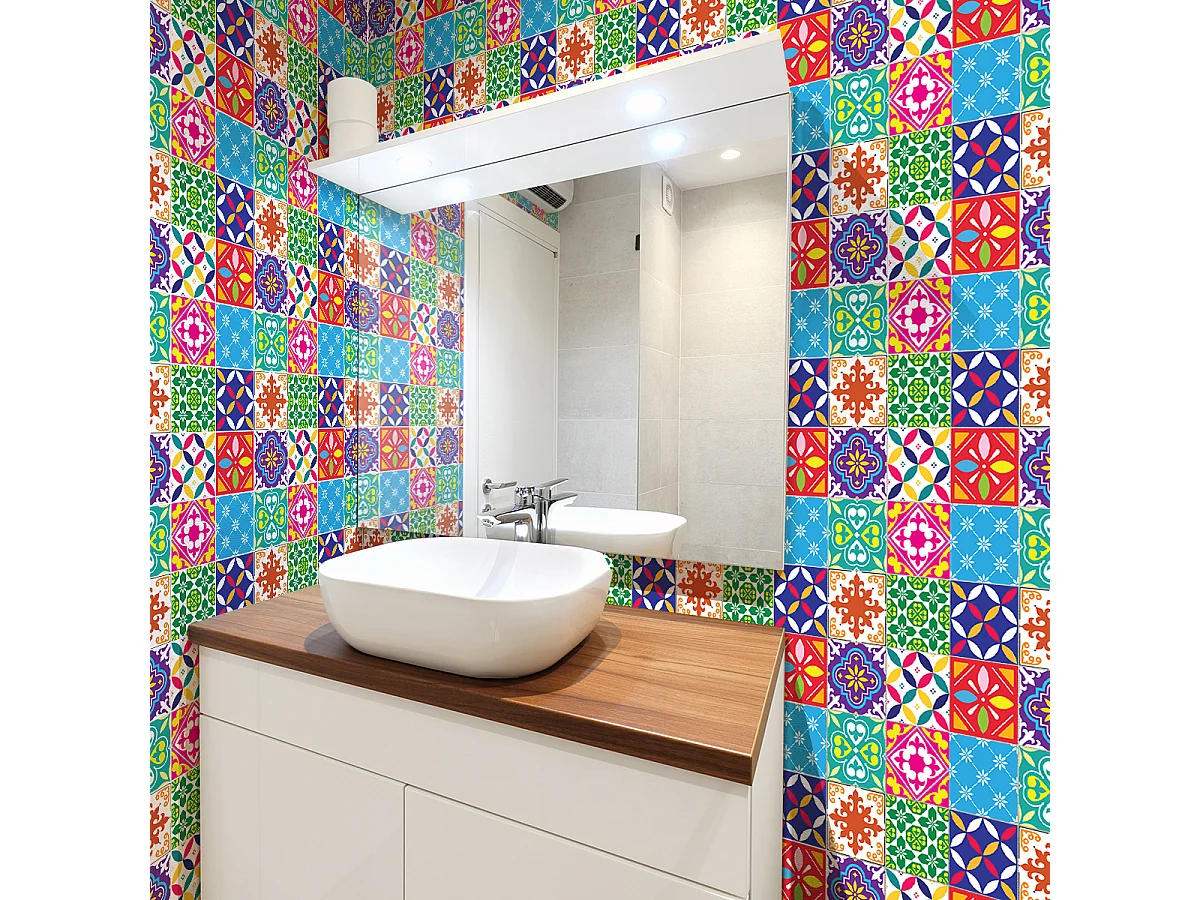 Description du produit Tous les stickers autocollants carrelage cuisine et salle de bains sont fabriqués avec une qualité d’ exception grâce à l’ utilisation des technologies les plus modernes en matière d’ impression. Impressions photos de qualité, non inflammable, non toxique, pas d'odeur, résistant aux grandes températures, aux rayures et à l'eau, pas d'utilisation de produits Sticker Mural Carrelage adhésif Cuisine Salle de Bain - 30 STICKERS CARREAUX DE CIMENT AZULEJOS MARA - 30stickers10x10cm. Choix 2 : 50 x 60 cm -30 stickers... 30 Stickers carrelages adhésifs 10 x 10 cm imitation carreaux de ciment N’ ayez crainte, il s’enlève sans laisser de trace ! Avec les stickers carreaux de ciment, vous pouvez enfin décorer l'intérieur de votre appartement ou maison à votre guise. Si l’ application est simple l’entretien l’est encore plus (facile à nettoyer et résistant aux rayures). Le sticker carreaux de ciment est un vinyle très fin, imprimé sur le dessus. Plus besoin de dé penser une fortune, les adhésifs carrelages sont conçus pour être collés sur une grande variété de surface: mur vierge, carreaux de faïence, tapisserie, meubles, etc. S’ enlève sans trace -Etanche: Oui -Lavable à l'eau et résistance aux solvants: Oui -Toxique et inflammable: Non (norme NF P 92-501 - M1) -Odeur: Aucune -Type d’ adhésif: Colle acrylique -Résistance à la température: -40 à 85° C. Stickers Pour Carrelage Salle De Bain 30 Pièces) Stickers Stickers Carreaux Salle De Bain Sticker Mural Carrelage Adhésif Cuisine Salle De Bain - 24 STICKERS CARREAUX DE CIMENT MARBRE DE MONTAUBAN Carrelage Mural Adhésif Permet une installation précise de votre carrelage azulejos mosaïque sans formation de bulles d’air.