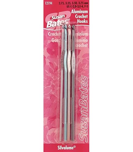 Les crochets ergonomiques Susan Bates Silvalume ont une poignée lisse et souple. La tête de crochet en aluminium offre des coutures uniformes et réduit la fatigue du poignet. Ce paquet contient 3 crochets avec poignées souples et têtes en aluminium. Nos 5 Meilleures Susan Bates Crochet en France - Novembre 2025 About this item Susan Bates Silvalume ergonomic hooks have a smooth, soft handle. Aluminum hook head provides uniform stitching and reduces wrist fatigue. Hooks are colour coded for quick size selection. The American Dimensions and metric are printed on the handles. This package contains 3 hooks with soft handles and aluminum heads. One of each size Crochet Susan Bates Ergonomique Ensemble De Crochets Ergonomiques Souples Silvalume De Susan Bates Tailles F5375 Mm G64 Mm Et H85 Mm 12693~p96403340 Crochet Ergonomique Un de chaque taille : F5/3,75 mm, G6/4 mm et H8/5 mm., -