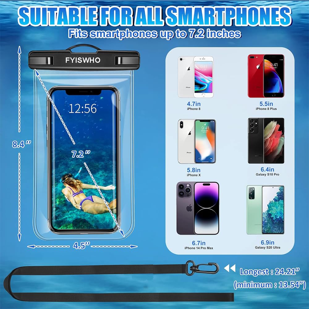 Toucher sensible : la coque étanche est fabriquée en PVC souple transparent de qualité supérieure pour garantir l'identification du visage, le toucher de l'écran et la prise de photos. Veuillez retirer votre coque de téléphone avant de mettre le téléphone dans le sac sec Astuce : étui pour téléphone portable sous-marin en raison de la pression de l'eau, l'écran du téléphone ne peut pas être utilisé sous l'eau, et vous pouvez utiliser le bouton de volume pour prendre des photos ou des vidéos sous l'eau Les matériaux utilisés sont généralement le TPU, le polycarbonate, le cuir et le silicone. Ce type de housse de poche Vivo offre une excellente protection et... Boîtier Étanche Universel pour Téléphone Portable cote-divoire... Protection Etanche Telephone FYISWHO Étui De Protection étanche Transparent Pour Téléphone Portable Vivo Y52 Y36 Y35 Y33s Y22s Y21 Coque Vivo Y70 Es ist bequem für Sie, Bildschirm zu berühren, Fotos oder Videos zu nehmen. Étui étanche universel pour téléphone Spigen A601 (IPX8 Crystal Clear Rappel : ce paquet contient une coque étanche avec une sangle stable et durable. La poche est adaptée pour l'argent liquide, les cartes de crédit pour éviter efficacement les gouttes accidentelles et les rayures. (Veuillez mettre un mouchoir à l'intérieur pour tester la coque étanche, trempez dans l'eau pendant environ dix minutes, puis vérifiez s'il est humide.