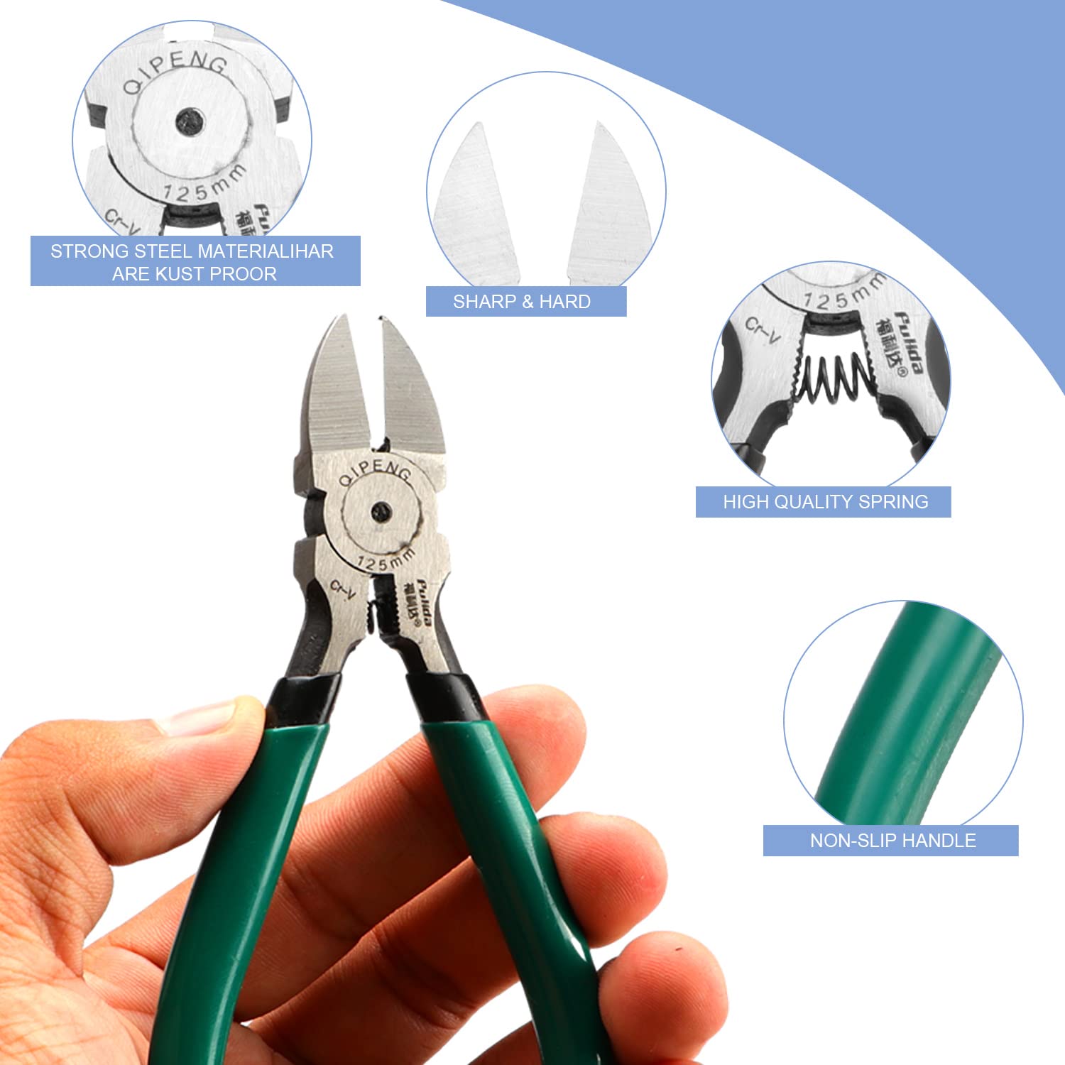 ▶ La poignée des couteaux affleurants a une poignée en caoutchouc, qui peut jouer un rôle protecteur et fournir une prise en main confortable. ▶ Nous pouvons mettre les couteaux latéraux durables de la taille d'une paume dans une poche ou un sac de voyage, ce qui est très pratique à transporter. Pince coupante à ressort 13.5 cm avec manche ergonomique by Perles&Co - Bleu x1 - Perles & Co Goalfish Pince Coupante Diagonale De 15,2 Cm Pour Travaux Manuels Caractéristiques : Couleur : vert. ✅【Service】Ce coupe-fil coupe bien pour les personnes souffrant d'arthrite ou de problèmes de préhension. 61 HRC) et à sa tête élancée, elle permet une coupe nette même dans les espaces restreints. Si vous avez des questions, veuillez nous contacter, nous vous servirons. N'essayez pas de couper l'acier dur car cela endommagerait le tranchant. Caractéristiques : ce coupe-câble ultra tranchant peut améliorer l'efficacité, longueur parfaite pour fournir un excellent effet de levier avec un mécanisme à ressort pour minimiser la fatigue de la main. Compacte et robuste, la pince coupante de côté Knipex (110 mm) est conçue pour couper avec précision aussi bien les fils tendres que les fils durs. Grâce à ses tranchants trempés par induction (env. 61 HRC) et à sa tête élancée, elle permet une coupe nette même dans les espaces restreints. Son ressort d’ouverture et ses poignées bi-matières assurent confort et efficacité. Fabriquée en acier au vanadium forgé, elle garantit une longévité exceptionnelle Fabriqué en acier au carbone et PVC de haute qualité, compact, léger, portable, antirouille, durable. Conception de poignée raffinée et confortable, sensation... Grâce à ses tranchants trempés par induction (env. Matériau : coupe-fil de 14 cm, les coupe-fils sont fabriqués en acier à haute teneur en carbone.