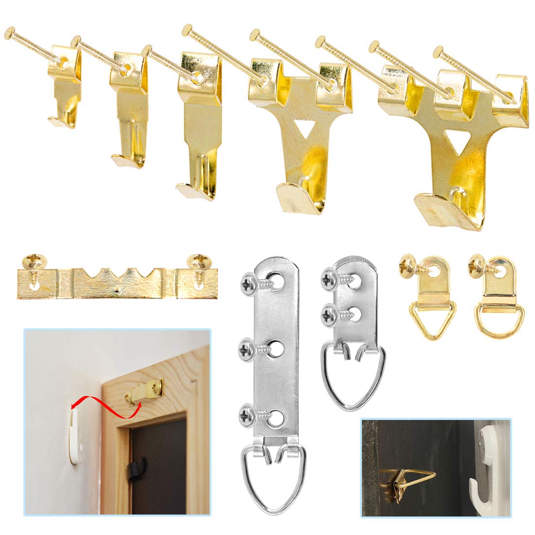 Lot de 20 cintres dorés de 13,6 kg. Crochet Pour Cadre Photo, DazSpirit 250 Pièces Kit de suspension de... Nombreuses utilisations : Convient pour accrocher des photos, des miroirs, des horloges, des vêtements, des clés, des sacs, des parapluies, des décorations, des lumières, des ustensiles de cuisine, etc. Keadic 307 Pièces Crochet Pour Cadre Photo,Crochet Mural Metal,Kit De Crochets D'Image Accroche Tableau Lourd En Métal Crochets à Suspendre Avec Vis Pour Toile, Photos, Horloge, Miroir Tailles riches : Les cintres dorés sont livrés avec 3 tailles différentes et les clous sont livrés en 5 tailles différentes, répondant à vos différents besoins de suspension de photos. Keadic Le kit de suspension de 488 pièces comprend des crochets de suspension pour cadre photo avec clous muraux, crochets de suspension pour photos, marteau à griffe, anneau en D, vis, fil de suspension pour décoration d'intérieur Caractéristiques du produit : Nom du produit : kit de suspension pour tableaux. Pourquoi nous choisir ? Matériau de qualité supérieure : Fabriqué en acier au carbone avec surface plaquée zinc, qui est haute dureté, pas facile à plier ou à déformer, résistant à l'usure, à la chaleur, à la corrosion, ne rouille pas facilement. Matériau : acier au carbone. Tous sont emballés dans une boîte pour un rangement facile. Le niveau de porte-clés fourni aide à garantir que votre installation est droite et précise. Contenu de l'emballage : Lot de 20 cintres dorés de 9 kg. Système de suspension pour cadre Cliprail - Lee Valley Tools Assortiment de tailles de kit de suspension pour répondre à vos différents besoins de suspension de photos. Avec ce kit d'outils, vous pouvez accrocher facilement et en toute confiance. métallique inoxydable - se fixe au dos des cadres - H27 X L25 X EP 5mm Permet de rendre le cadre amovible - Poids : 50 g... 30 pièces - Vis 30 pièces : anneau en D. La quantité suffisante et les différentes tailles peuvent répondre à vos différents besoins de suspension. Le marteau à griffes avec une tête magnétique vous permet de saisir et de positionner facilement le clou. 🌸【Large application】Le kit de suspension de photos est adapté pour accrocher des photos, des miroirs, des horloges, des vêtements, des clés, des sacs, des parapluies, des décorations, des lumières, des ustensiles de cuisine, etc.