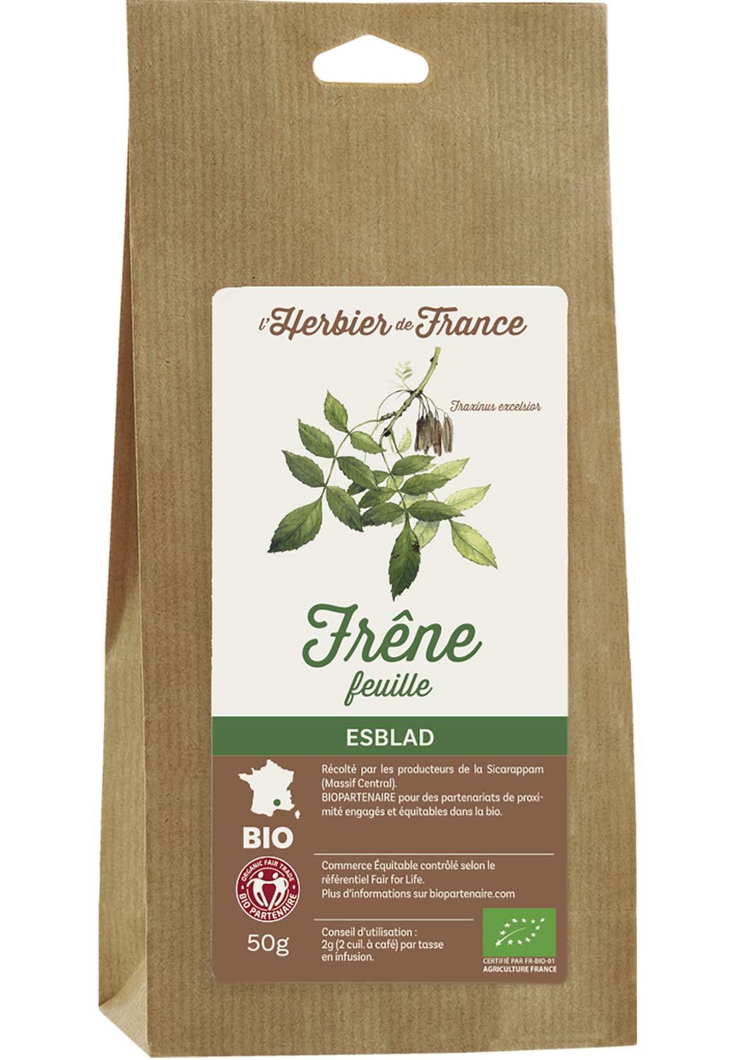 En tout, nous vous proposons plus de 200 références, disponibles en boutiques bio et sur certains sites internet. L'herbier De France Frêne Feuilles Bio Sachet Kraft, 50 G · Remboursement pendant 3 ans de votre achat sous forme d'avoir · Prise en charge immédiate par le SAV... Promo Thym Feuille Herbier De France - 50 G chez NaturéO 1g Par tasse en infusion Tisane Bio L'herbier De France Frêne Feuilles Bio Sachet Kraft, 50 G Tisanes Bio Expédition prévue : 19/05/2025. Livraison prévue : 20/05/2025 Ingrédients Feuilles de frêne* Fraxinus exelsior 100%. * Ingrédients issus de culture biologique contrôlée. Conseils d'utilisation- 1g (1 cuil. à café) par tasse en infusion. L'info en plusLa feuille de frêne stimule la diurèse et l'élimination naturelle Description du produit L'Herbier de France Frêne Feuilles Bio Sachet Kraft 50 g Ingrédients L'Herbier de France Frêne Feuilles Bio Sachet Kraft 50 g Mode d'emploi 1g (1 cuil. Plante aromatique et médicinale bio utiliser comme tisane ou décoction