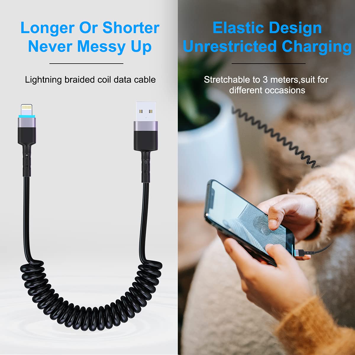 Prise en charge d'Apple Carplay : ce câble de charge de voiture spirale pour iPhone prend en charge Apple Carplay la connexion de l'iPhone 14 à votre voiture pour des fonctions telles que la navigation et la lecture de musique. Le câble spirale USB vers Lightning est le choix parfait pour charger votre téléphone dans la voiture, et le design rétractable du câble tient assez long pour s'étirer sur le siège arrière sans s'emmêler et garde votre voiture bien rangée et bien rangée - Airpods / Airpods 2ème génération / Airpods Pro. Léger et polyvalent : le paquet contient 2 câbles de charge rapide USB A vers Lightning. Un câble Lightning certifié MFi à 3,74 Certifié MFi - Fabriqué pour iPhone/iPad/iPod pour garantir une compatibilité totale avec le nouvel iOS sans message d'erreur. Prise en charge parfaite pour Apple Carplay, obtenez des directions, téléphonez et profitez de votre musique préférée. Câble Apple Carplay fabriqué en TPU de haute qualité et fil de cuivre qui est flexible, ne s'emmêle pas et ne se casse pas facilement Charge rapide Apple Phone 2,4 A et vitesse de transfert de 480 Mbps. Compatibilité avec les appareils Apple : le câble spirale USB vers Lightning [certifié MFI] assure une charge sûre, entièrement compatible avec iPhone 14/14 Pro/14 Pro Max/14 Plus, iPhone 13/13 Pro/13 Pro Max/13 Mini, iPhone 12/12 Pro/12 Pro Max/12 Mini, iPhone 11/11 Pro/111 Pro111 Pro Max, iPhone XS Max/ XS/XR/X, iPhone 8/7/6 Plus, i Pad Pro/i Pad Air/i Pad /iPod Design en spirale : le câble Lightning court en spirale mesure 0,46 m en normal et peut être étiré jusqu'à 1,83 m. Câble spiralé certifié MFi]Câble spiralé MTAKYI Lightning (câble USB A vers Lightning), câble de charge iPhone parfait pour votre voiture. Notre offre Câble Lightning USB A spiralé - Large compatibilité : iPhone 14/iPhone 14 Pro/iPhone 14 Plus/iPhone 14 Pro Max. Cable Mini Usb Lot De 2 Câbles Spiralés USB De Type C Vers Lightning, Chargeur Rapide Cable Iphone 14 Type de connecteur. USB A vers Lightning ; Type de câble. USB ; Appareils compatibles. AirPods, iPad, iPhone ; Caractéristique spéciale. Magnétique ; Modèles de... iPhone 6S Plus/iPhone 6S/iPhone 6/iPhone 6 Plus. Que vous soyez allongé sur le canapé, dans le lit ou sur le siège arrière de votre voiture, il est facile de charger votre iPhone. iPhone 12/iPhone 12 Pro/iPhone 12 Pro Max/iPhone 12 mini. Câble Lightning rétractable pour Apple : la solution parfaite pour garder vos câbles bien rangés et organisés., Comment connecter Carplay ? 1., Connectez le câble de charge rapide iPhone au port iPhone et de type C de la console centrale de la voiture., 2., Tournez Siri dans [Settings]- [Siri and Search] sur l'iPhone., 3., Click Connect. Le câble de charge Apple pour voiture est parfait pour la connexion à des blocs d'alimentation mobiles portables et des chargeurs de voiture