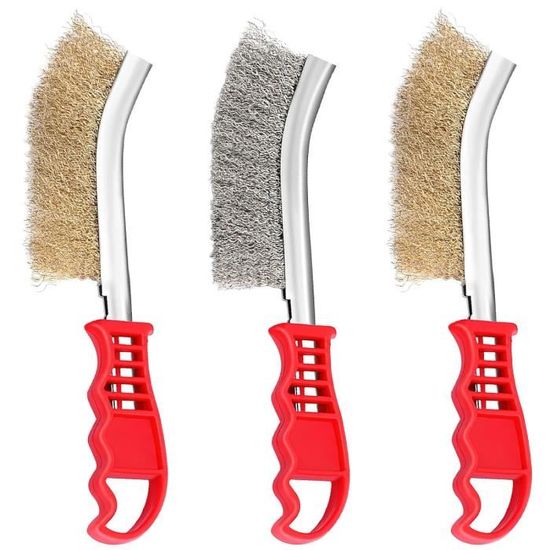 Caractéristiques : Nom : ensemble de brosses métalliques. MAXMAN Lot De 6 Brosses Métalliques En Nylon/laiton/acier Brosse Métallique Avec Pelle Brosse Métallique En Acier Brosse En Acier... Design ergonomique : les poignées de la petite brosse métallique sont ergonomiques et offrent un maximum de confort et de contrôle, même avec une utilisation intensive. Ensemble de brosses métalliques polyvalentes : ce lot de 8 pièces comprend 2 grandes brosses métalliques (brosse en acier et brosse en acier inoxydable), 3 petites brosses double face (nylon, acier inoxydable et brosse en laiton), 2 petits grattoirs et une brosse en laiton souple avec manche en bois. Matériau : acier inoxydable/nylon/plaqué cuivre. Remarque : Les mesures étant prises à la main, les tailles indiquées peuvent varier légèrement. Brosses spéciales pour différents matériaux : la brosse en acier inoxydable est parfaite pour nettoyer les surfaces en alliage et en acier inoxydable, tandis que la brosse en laiton est assez douce pour travailler sur des matériaux délicats tels que le bois ou les métaux fins. Idéal pour enlever la rouille, la peinture et les soudures sur diverses surfaces telles que le bois et le métal. Élimination efficace de la rouille : le lot de brosses métalliques à main est un outil puissant pour enlever la rouille et la peinture sans effort, ainsi que pour ébavurer les surfaces métalliques. Ensemble de brosses polyvalentes : 4 brosses spéciales (acier inoxydable, laiton, bronze phosphoreux, nylon) avec poignées en plastique – avec crochet pratique... Brosse Métallique Manuelle Brosse Main Jeu De Brosses Métalliques 6 Pièces, Brosse En Laiton, Brosse Métallique Avec Poils En Laiton 200 Mm Pour Lelimination De La Rouille De La Salete Et De La Peinture Pour Brosse Métallique Rotative Il offre la solution parfaite pour les projets de bricolage et les applications professionnelles.