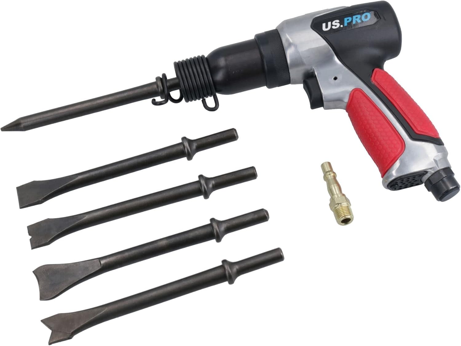 5Pcs Marteau Burin Pneumatique, Ciseau à Marteau Pneumatique, Marteau Pneumatique Fixé 150/190 MARTEAU BURINEUR A AIR COMPRIME AVEC MANDRIN A LIBERATION RAPIDE 10 mm. 78,18 €. TTC. Marteau burineur à air comprimé puissant pour utilisation universelle... Débranché Aujourdhui Climax Marteau A Piquer Pneumatique Rapport Affronter Lame Marteau piqueur puissant pour utilisation universelle Idéal pour les travaux de découpe de tôles dans le secteur automobile Très utile également dans le domaine sanitaire et industriel Pour desserrer les raccords vissés rouillés, les travaux sur maçonnerie ou pour décoller le plâtre et les carreaux Fréquence de frappe réglable en...