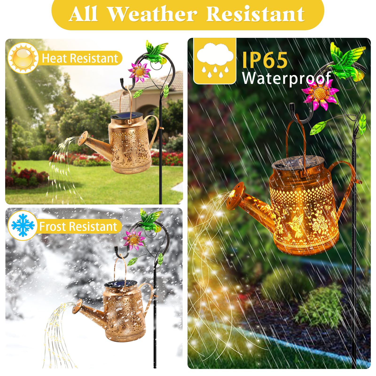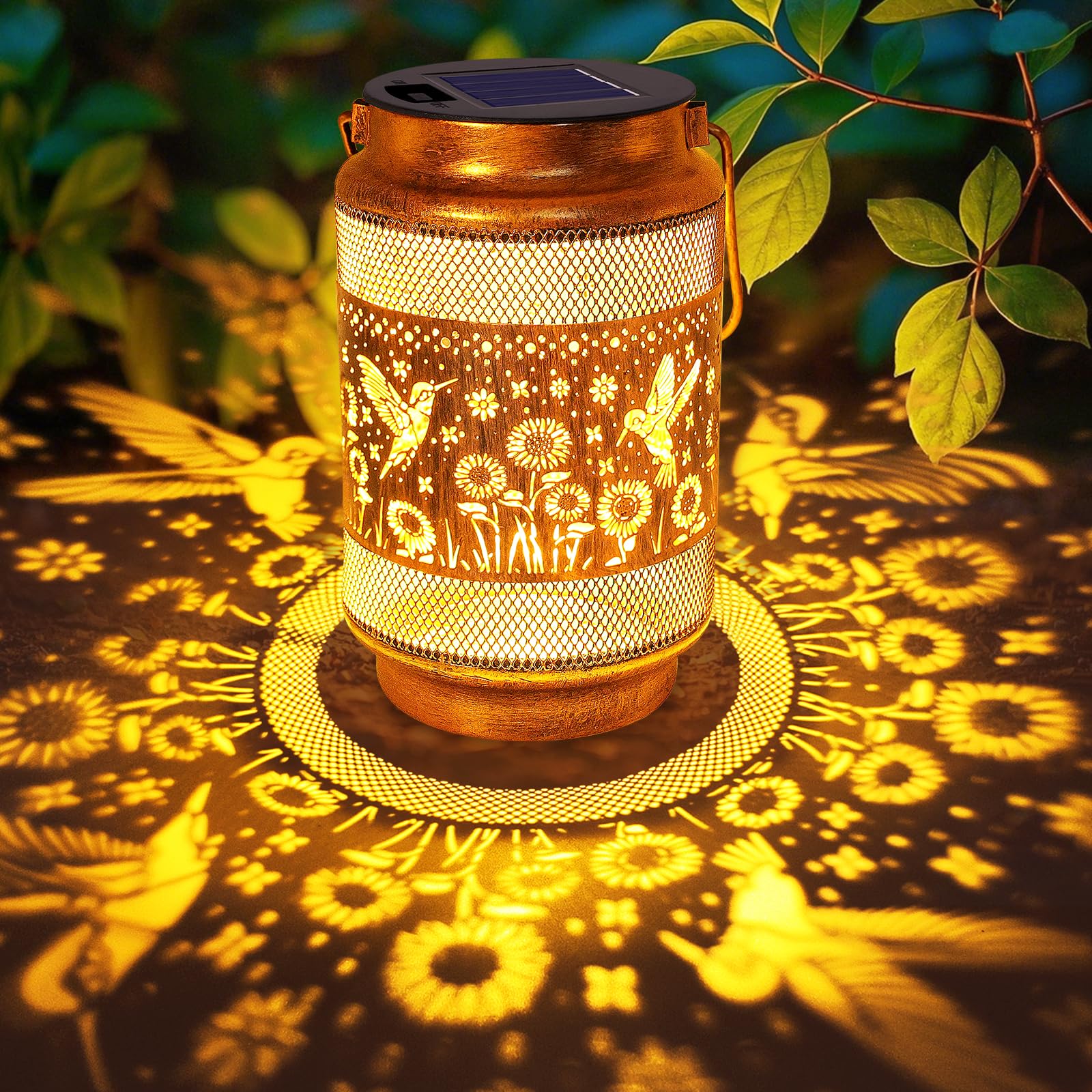 Lanternes solaires d'extérieur Effet de flamme vacillante réaliste] - Ces lanternes solaires d'extérieur présentent une lueur orange chaude avec un design de flamme vacillante qui crée l'apparence d'une vraie flamme allumée. Parfait pour ajouter une atmosphère chaleureuse, accueillante et décorative à votre jardin, terrasse ou véranda la nuit Facile à utiliser : les lanternes solaires s'allument automatiquement au crépuscule pour éclairer votre espace extérieur : accrochez-les aux arbres, aux porches ou aux pergolas, placez-les sur des tables, des allées ou des rebords de fenêtre, ou suspendez-les avec des crochets de berger, en projetant de beaux motifs qui font ressortir votre jardin. Lot De 2 Lanternes Solaires De Jardin - Boules De Verre Dorées étanches - Jaune - Maison Cadeau parfait pour les femmes et les occasions spéciales : les lanternes solaires en forme de colibri sont joliment emballées, idéales pour la fête des mères, Noël, un anniversaire, la Saint-Valentin, une pendaison de crémaillère ou un anniversaire de mariage, un cadeau attentionné pour maman, grand-mère, épouse et amis amoureux du jardin Achetez Lot de 2 lanternes solaires étanches en forme de colibri pour l'extérieur, cadeaux d'anniversaire, de Noël pour femme, maman, grand-mère, décoration... Lot de 2 lanternes solaires pour extérieur - Colibri - Avec Allumez l'interrupteur avant utilisation, notre interrupteur est situé sur le devant du boîtier de batterie, pas besoin de retirer le boîtier de la batterie pour allumer l'interrupteur comme d'autres lanternes Décoration de jardin solaire parfaite : améliorez votre jardin, terrasse ou jardin avec les lanternes solaires en bronze doré avec un motif de colibri vintage.