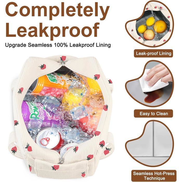 Design simple et élégant, idéal pour un usage quotidien et également comme sac fourre-tout ou sac pour maman. Sac à déjeuner isotherme, sac fourre-tout pour femme et Protection thermique de 8 heures : la conception de la boîte à déjeuner isotherme à quatre couches (BPA - doublure PEVA mousse de 3 mm) garde les restes... Les tissus en velours côtelé donnent un aspect élégant, robuste et durable Profitez de vos aliments sains. Complète toutes les tenues tout en gardant vos aliments frais La doublure sans couture est étanche et idéale pour les blocs de glace ou les boissons sans vous soucier des déversements. Bandoulière amovible : livré avec une bandoulière amovible et réglable pour porter à la main, en bandoulière ou à l'épaule, se glisse également dans les grands sacs. Le compartiment principal lisse à double fermeture éclair peut contenir une boîte à déjeuner, des fruits ou des boissons, la poche avant Velcro et deux poches latérales élastiques pour les collations ou les ustensiles, etc. Léger et robuste : le sac à déjeuner isotherme ne pèse que 0,3 kg, les poignées souples et robustes avec bouton, il est idéal pour le transport confortable à l'épaule ou dans le sac. Étanche et isolé : Fabriqué avec un matériau 4 couches pour garder les aliments chauds ou froids pendant des heures. Sans BPA, la doublure sans couture est... SNDEC Boîte à Déjeuner Pour Femme, Joli Sac à Déjeuner Isotherme En Velours Côtelé Pour Filles, Esthétique, Vintage Réutilisable, Sac à Déjeuner contactez-nous à tout moment si vous avez des problèmes