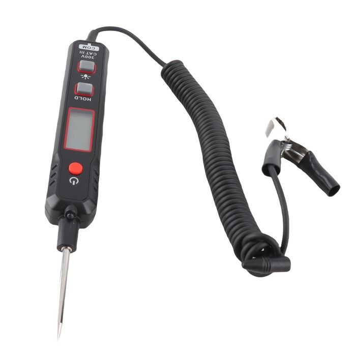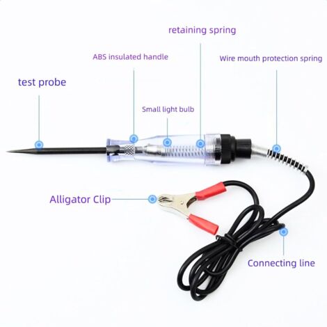 Description du produit Stylo de test de réparation de circuit automobile Testeur de circuit de voiture Kuuleyn, testeur de circuit de tension de camion de voiture 6V 12V 24V DC voltmètre de test de voiture stylo longue sonde ampoule testeur de circuit de voiture testeur de circuit de fil testeur de circuit de tension de voiture stylo de sonde de voiture 6V 12V 24V stylo de sonde de tension camion testeur de circuit stylo lampe de test sonde de puissance 3 La sonde en acier tranchant perce facilement l'isolation des fils pour vérifier les circuits. OPI00233-MULTIMETRE,Testeur de tension Automobile 6V 12V 24V DC... 【Haute qualité】 Le stylo sonde de voiture est fabriqué en acier au carbone de haute qualité + matériau plastique AS, qui a une haute résistance, solide, haute fiabilité, anti-corrosion, résistant à l'usure, léger, durable. Veuillez Vous Référer Au Produit Réel. Acier au carbone de haute qualité + matière plastique ABS Le stylo de sonde de voiture est fabriqué en acier au carbone de haute qualité + matière plastique ABS, qui présente une résistance élevée, une robustesse, une fiabilité élevée, une résistance à la corrosion, une résistance à l'usure, un poids léger et une durabilité La sonde en acier pointue perce facilement l'isolation du fil pour vérifier le circuit 【Tout neuf】 100% tout nouveau testeur de circuit de fil électrique de haute qualité, rigoureusement testé pour assurer la meilleure qualité avant expédition, sûr à utiliser. tout neuf Testeur de fils et de circuits 100% neuf de haute qualité, inspection complète stricte, pour assurer la meilleure qualité avant expédition et une utilisation sûre lorsque la connexion du circuit est terminée, le voyant de la poignée s'allume. Testeur de Circuit Électrique de Puissance Automobile, Outils Testeur Electrique Voiture Testeur De Circuit Électrique, Voiture 6V 12V 24V Cc Testeur De Circuit Testeur Electrique Automobile 【Caractéristiques】 Le testeur de circuit de tension de voiture peut tester une gamme de circuits allant de 6V à 24V.