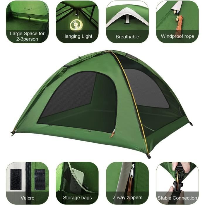 Pas besoin fumer pour les pôles la tente, ou des instructions gênantes et compliquées., 2., haute qualité: tentes camping et APOS; La couche extérieure est constituée tissu polyester 180 t, revêtement PA., 3., Une couleurs: bleu ciel, orange, vert facultatif, facile à transporter., 4., Le meilleur choix pour les plages, le camping, la randonnée et les plages., 5., Si vous avez des questions, veuillez nous contacter à temps! Si vous cherchez une tente plus spacieuse pour des voyages en famille ou entre amis, la tente Octagon de Coleman est un excellent choix. Ne laissez pas le mauvais choix de tente gâcher votre escapade en plein air - choisissez parmi ces meilleures tentes dôme et préparez-vous à vivre des aventures inoubliables. Que vous soyez un débutant ou un campeur expérimenté, il est important de trouver la bonne tente pour votre voyage. Camping Tente,2-3 Personnes Ultra Légère Tente Facile À Installer... Tente dôme 3 places ASCOU_3 | Élémenterre Tente De Camping 2 Seconde Tente 3-4 Personnes à Montage Rapide Et Facile Pour Le Plein Air, Tente Familiale Imperméable Et Coupe-Vent, Tente De Camping Dôme Adaptée Pour Les Voyages De Camping En Famille En Plein Air Tente 2 Personnes La tente Bessport est une option légère et facile à installer pour les campeurs individuels ou en petit groupe. Des atouts qui la rendent idéale pour les road trips, les festivals ou les escapades en plein air. Bien que l’on note quelques remarques concernant les piquets standards ou un sac de rangement trop petit, elle offre une excellente résistance aux intempéries et un bon rapport qualité-prix Les meilleures tentes dôme pour le camping et les aventures en plein air Le camping et les aventures en plein air sont des activités populaires pour ceux qui cherchent à échapper à la routine quotidienne et à se rapprocher de la nature. Parfaite pour les festivals ou le camping familial, cette tente dôme vous permet de profiter d'un espace confortable pendant votre escapade en plein air. Avec sa fonctionnalité et sa légèreté, cette tente est idéale pour les aventures en solo. Grâce à son architecture en dôme, cette tente offre une hauteur suffisante pour une utilisation confortable, tout en restant légère et facile à transporter.