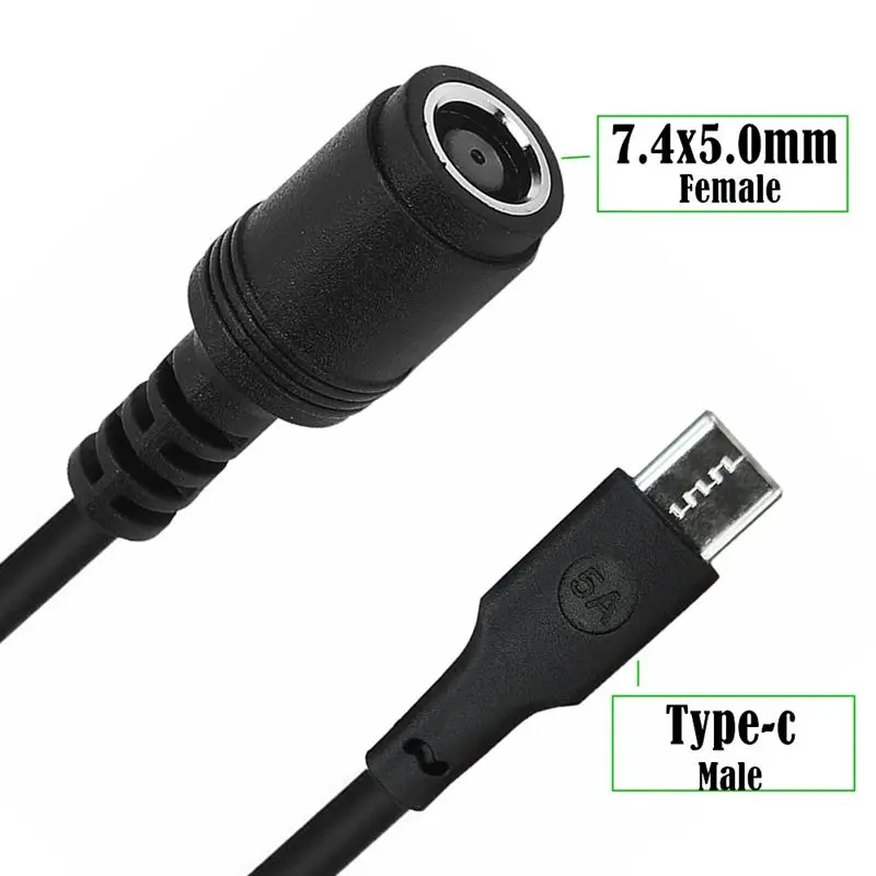 Chargeur pour PC Portable HP Original HP 45W - 19.5V / 2.31A - 7,4 x 5... Caractéristiques : Entrée : connecteur mâle de type C. Câble de charge USB type C DC 7,4 mm x 5,0 mm PD intégré et puce intelligente, peut régler automatiquement le courant, prend en charge jusqu'à 5 A de courant 20 V grâce au chargeur rapide PD de 100 W vers prise jack DC 7450, et compatible avec les chargeurs rapides Power PD de 100 W, 90 W, 65 W, 45 W, 30 W, 18 W et autres chargeurs rapides Power PD (non utilisés pour le transfert de vidéos ou de données) ciciglow Câble de Charge USB C vers DC pour Ordinateur Portable, 20 V 5 A 100 Usb C Micro Usb YAODHAOD Câble De Charge USB C Vers DC 7,4 Mm X 5,0 Mm Compatible Avec HP Cable Telephone Portable Veuillez noter que le chargeur mural USB-C PD doit être au-dessus de la sortie de l'ordinateur portable. Alors il est préférable d'utiliser le bloc d'alimentation 65 W Par exemple, le bloc d'alimentation d'origine est de 19 V 3,33 A, et sa puissance est de 65 W. Adaptateur USB C vers connecteur baril, utilisez-le avec un chargeur PD USB-C de 100 W pour charger votre ordinateur portable confortablement. Câble de charge USB C vers DC7450 pour ordinateur portable 100 W PD - Câble de rechange qui peut connecter les ordinateurs portables HP à un bloc d'alimentation PD avec une distance de 1,8 m, suffisant pour connecter des appareils tout en chargeant encore dans votre chambre, bureau ou partout où vous le souhaitez Sạc dành cho Laptop Dell Inspiron 14 5000 Series Inspiron 15 5000... Compatible avec les ordinateurs portables HP