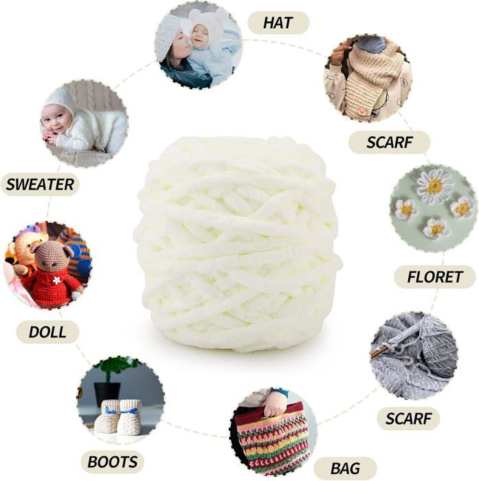 Laine à tricoter douce pour crochet Le fil à crochet est fabriqué en fibre 100 % polyester très douce, qui ne perd pas ses peluches et est épaisse et résistante. Le fil chenille est très doux pour la peau La laine est très douce pour la peau. Profitez de la joie de tricoter : le fil de velours doux et brillant est adapté à tous les projets de tricot et de crochet. Reessy Lot de 4 pelotes de fil chenille - 100 g - Super doux Couleurs : 5 couleurs vives Poids : chaque laine à tricoter pèse 100 g par pelote Longueur : 120 m Matériau : 100 % polyester Taille d'aiguille recommandée : 5 à 6,5 mm Taille de crochet recommandée : 4 à 5,5 mm Contenu : 4 x 100 g de fil chenille / 6 x 100 g de fil chenille Chaque fil épais pèse 100 grammes et mesure 120 mètres de long, ce qui le rend parfait pour le tissage de divers travaux manuels et articles ménagers. LUNARM 3 x 100 g de fil chenille pour crochet et tricot avec aiguilles à gros Il convient pour tricoter des couvertures, des écharpes, etc. Le sac portable... Lustre accrocheur : le fil chenille est très doux pour la peau, chaque laine à tricoter pèse 100 g, ce qui lui donne une texture velue au contact. Fil chenille doux : le fil à crochet est fabriqué en fibre 100 % polyester très douce, qui ne perd pas ses peluches et est épaisse et résistante. Le fil à crochet moelleux donne au matériau tissé une sensation brillante, rendant votre projet plus attrayant et exquis. C'est également le meilleur choix pour les projets d'artisanat de fil de bricolage tels que les sacs faits à la main et les poupées. Le fil de coton épais est fabriqué en coton de qualité, doux et confortable au toucher, et a une bonne chaleur, chaque rouleau de fil pèse environ 100 grammes, soit 4 rouleaux au total. Solide, portable et facile à ranger, ce qui peut répondre à vos différents besoins de bricolage et d'artisanat Fil Chenille Pour Crochet Lot De 3 Pelotes De Fil Chenille De 100 G (3 X 80 M) Avec Aiguilles à Gros Chas Pour Tricot Et Crochet, Vêtements, Couvertures, Sacs, Pulls, Projets De Tricot (gris Pelote De Chenille Pour Crochet Chaque laine à tricoter pèse 100 g, ce qui lui donne une texture velue au contact.