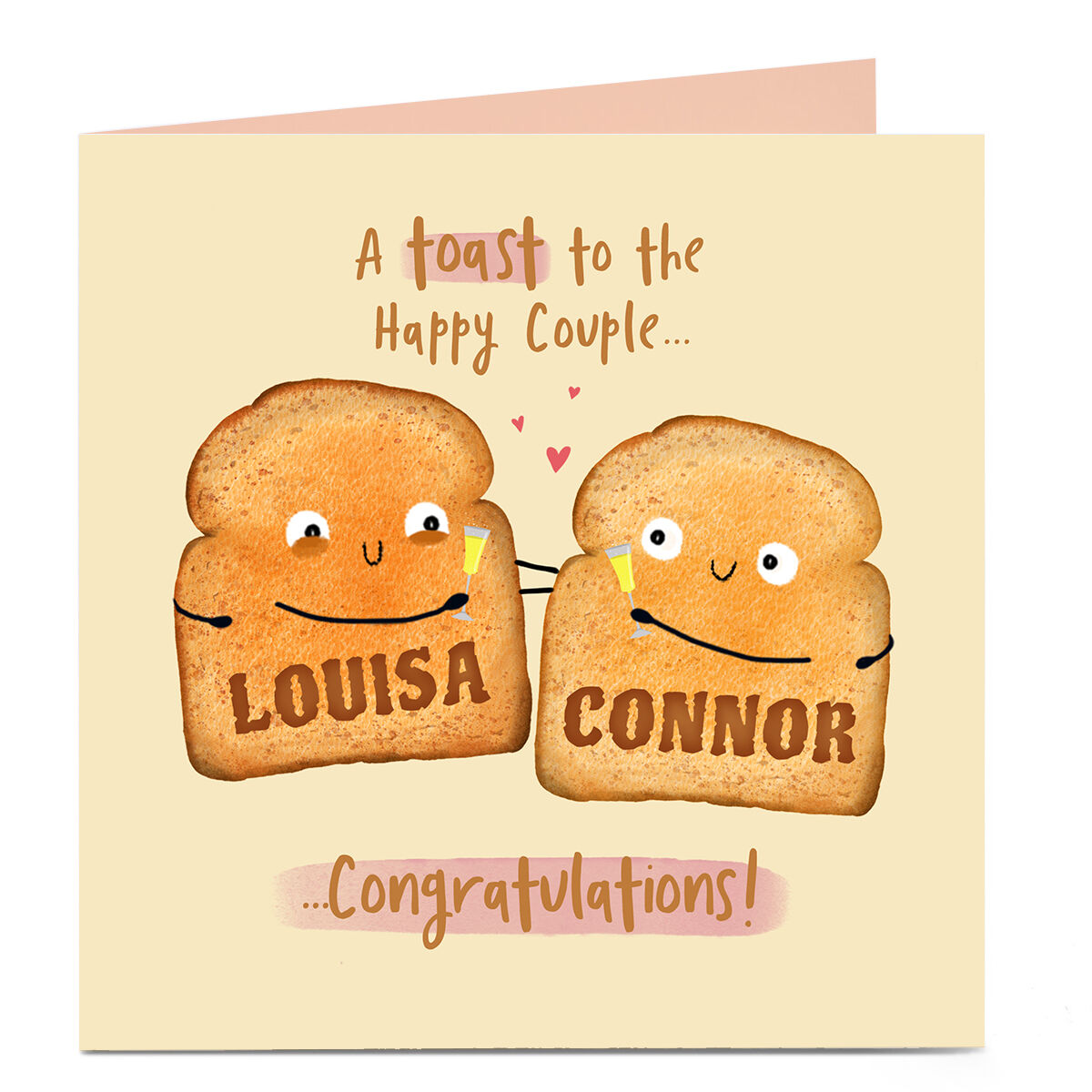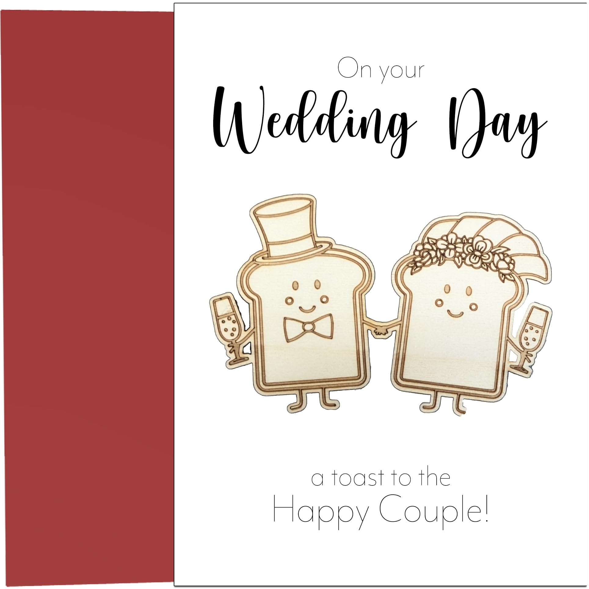 Vous êtes à la recherche d'une carte de mariage un peu spéciale ? Quelque chose au-delà de l'ordinaire, peut-être que cette carte sera faite pour vous. La carte, la tranche d'arbre en bois avec le dos encore dessus et l'enveloppe ont tous été soigneusement créés pour donner une sensation de nature agréable et un look haut de gamme. A Toast to the Happy Couple – Tillie Rose Studio Celebrate the happy couple with this quirky folded wedding card featuring a silly bread and toaster design. Perfect for adding humor and warmth to your... Elle est également livrée avec une enveloppe rouge pour que la carte soit spéciale. Wooden Toast Fridge Magnets Wedding Card - A Toast To The Happy Cette carte est livrée avec deux petits morceaux de pain grillé, découpés et gravés dans du bois pour ressembler (un peu) à une mariée et un marié. La carte est également assez grande avec 21 cm x 14,8 cm (pliée). Ils ont chacun un aimant à l'arrière pour que les jeunes mariés puissent les coller à leur réfrigérateur (ou ailleurs) pour rappeler leur jour spécial. Amants de marage épas, Amants de remercement, Amants de...
