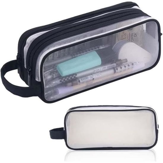 Utilisez-le comme organisateur de voyage (articles de toilette, câbles), trousse de maquillage compacte (rouges à lèvres, pinceaux), pochette de gadget 3C (écouteurs, chargeurs) ou support d'accessoires de bureau (autocollants, trombones). Pour Enfant Pour Fille - Grande Capacité - Pour Adolescents Trousse Transparente Parfait pour l'école, les voyages, les croquis en plein air ou les trajets : vos essentiels restent portables et prêts. Cette trousse à crayons en maille transparente est conçue pour durer. Avec ses 2 compartiments et une fermeture éclair douce, elle protège efficacement vos... Mettez-le dans un sac à dos, un bagage ou accrochez-le n'importe où grâce à la boucle intégrée. Parfait pour les étudiants, les artistes ou les professionnels, il garde tous vos outils bien rangés pour les salles de classe, les projets créatifs ou le travail de bureau, plus de désordre Clair et visible, accès rapide : le design élégant en maille semi-transparente vous permet de voir le contenu en un coup d'œil, éliminant les recherches frustrantes. Ultra-léger, indispensable pour les déplacements : ne pesant que 75 g, il est aussi léger qu'une plume. La double fermeture éclair lisse glisse sans effort, assurant une fiabilité durable. Idéal pour : étudiants, professionnels, artistes, voyageurs, minimalistes Cas d'utilisation : salles de classe, bibliothèques, bureaux, cafés, vols, voyages en voiture. Le sac à stylos en maille transparente, permet de voir les articles stockés et de les récupérer facilement. Rangement polyvalent et polyvalent : plus qu'une trousse à crayons. Matériau durable : design unique avec maille de haute qualité, plus confortable et durable. Les 2 têtes de fermeture éclair se ferment en douceur pour mieux protéger le contenu à l'intérieur. La poignée peut être accrochée et transportée facilement Grande capacité : taille améliorée de 22,5 cm x 7,5 cm x 9,5 cm, il peut stocker jusqu'à 50 stylos ou crayons de couleur. Qualité supérieure : la trousse transparente est fabriquée en maille de haute qualité et avec une finition soignée, elle est robuste et lavable. Des chaussures aux vêtements, des tenues de sport aux accessoires. S'adapte parfaitement à l'étude, au travail, aux voyages ou à la vie quotidienne - la fonctionnalité rencontre le style. Pourquoi nous choisir ? Maximisez l'espace + minimisez le poids + visibilité transparente + durabilité robuste = organisation plus intelligente pour une vie simplifiée. Parfait pour les étudiants qui ont besoin de transporter une variété d'accessoires de papeterie. Fjquamitix Trousse à crayons transparente pour examens