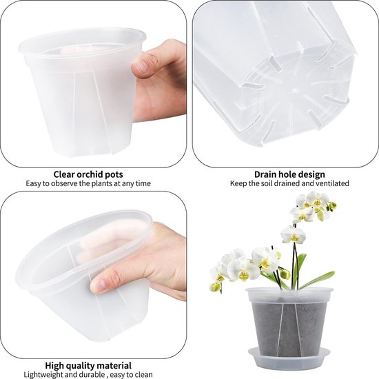 Matériel : PP Couleur : Blanc Taille du produit :14*14*12CM Applicable à la culture et à l'infirmière de Phalaenopsis, du cactus, du dendrobium, du cactus... Caractéristiques : Matériau : plastique Diamètre supérieur : 11,5 cm Diamètre inférieur : 8,3 cm Hauteur : 11 cm Couleur : Transparent Le paquet comprend : 10 x Pot Orchidée Transparent 10 x Soucoupes pour Pots de Fleurs ❤100% SATISFACTION : En cas de problème de qualité avec le pots plantes transparents, n'hésitez pas à nous contacter, nous serons ravis de vous aider. Cela améliore l'absorption d'eau et réduit le risque de pourriture des racines et d'enchevêtrement. Pot Transparent Plante Pot Orchidée Transparent Avec Soucoupe - Plastique ABS - 14,2x10,2 Cm - Drainage Air Pot Plastique ABS Orchidée Pot Transparent Pour Orchidée 10 Pièces Transparent Pot Plastique Plante 9Cm Pot Pot Orchidée De plus, le matériau transparent permet à suffisamment de lumière solaire de passer pour une meilleure photosynthèse. Nous serons heureux de vous rembourser ou de remplacer le produit. ❤【Taille et contenu de l'emballage】 Vous recevrez un total de 10 pot plastique plante avec un diamètre d'ouverture de 11,5 cm, une hauteur de 11 cm et un diamètre de fond de 8,3 cm. La transparence permet de savoir quand arroser les racines. ❤【Apparence claire】 Les pot orchidée sont transparents, ce qui permet d'observer facilement tout le processus de croissance des plantes. Respirant et Drainant]Pot transparent orchidée a 8 trous de drainage au fond, ce qui empêche efficacement les racines des orchidées de pourrir en raison de l'accumulation d'eau, crée un bon environnement de respiration pour les racines des orchidées, répond aux habitudes de croissance des orchidées qui aiment la ventilation, et... Ils sont faciles à nettoyer et réutilisables.