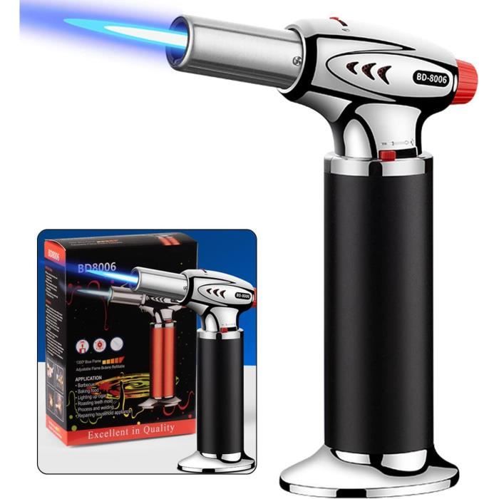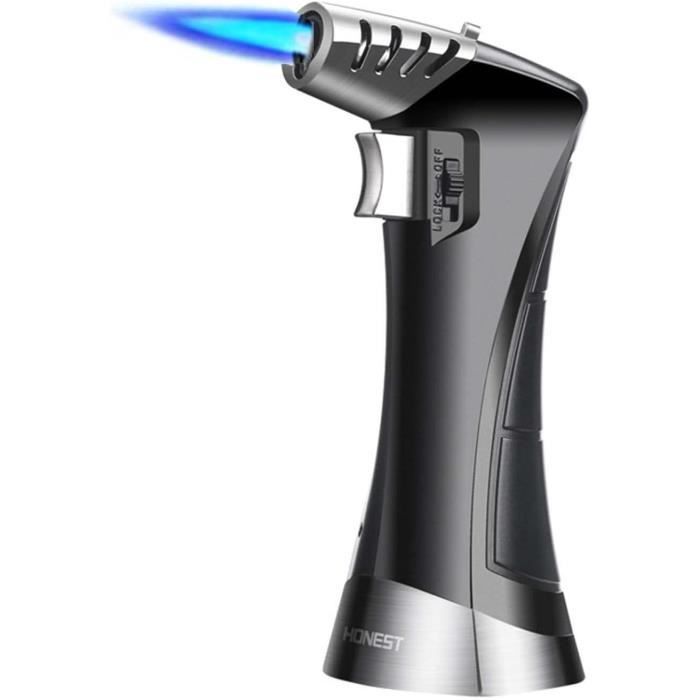 Chalumeau au butane sûr et durable : avec verrouillage de sécurité empêche l'allumage accidentel et une large base empêche les chutes. Chalumeau de Cuisine, Briquet Torche Réglable et Rechargeable avec... Rechargeable et polyvalent : faites glisser le verrou de sécurité pour éteindre et le régulateur de gaz au milieu, appuyez sur le bouton d'allumage pour allumer la lampe de poche. Briquet Tempête Gaz PROMISE Briquet Tempête 3 Allume-feu à Jet Et Butane Briquet à Gaz Rechargeable Pour Camping Utilisation De La Faune Idée Cadeau(Noir Briquet Tempete S'allume avec la technologie d'allumage piézoélectrique : il suffit d'appuyer pour allumer le feu, facile à utiliser avec le régulateur de débit de gaz et la valve de contrôle du débit d'air, peut être contrôlé l'intensité de la flamme, relâchez le bouton, la flamme s'éteint. Briquet Chalumeau à Flamme Bleue Verrouillage de la Flamme réglable... Briquet Chalumeau Pulvérisateur Verrouillage Sécurité | Briquet Tek Maintenez allumé, poussez le verrou de sécurité en position « Lock » pour activer le mode continu, puis il continuera à tirer sans que vous appuyez. La buse en alliage d'aluminium peut résister à des températures élevées et prolonger le temps d'utilisation de la lampe de poche.