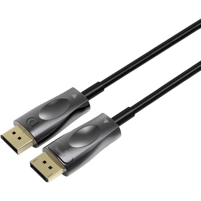 Le Display Port permet une communication bidirectionnelle innovante entre un PC et un écran - compatible plug and play Câble pour transmission vidéo/audio numérique jusqu'à un débit de données maximum de 32,4 Gbit/s, DisplayPort 1.4 augmente le débit de données maximum de 50 % par rapport aux débits de données DisplayPort 1.2 - Résolution : 8K (7680x4320) à 60 Hz, 5K (5120x2880) @ 60 Hz, 4K (3840 × 2160) @ 120 Hz - Profondeur de couleur prise en... NEWDERY DisplayPort Cable 1.4 8K 4M, 8K Cable DP a DP Nylon Trenzado, Admite 8K@30Hz/60Hz DSC Câble pour transmission vidéo/audio numérique jusqu'à un débit de données maximum de 32,4 Gbit/s, DisplayPort 1., 4 augmente le débit de données maximum de 50 % par rapport aux débits de données DisplayPort 1., 2 - Résolution : 8K (7680x4320) à 30 Hz, 5K (5120x2880) @ 60 Hz, 4K (3840 × 2160) @ 120 Hz - Profondeur de couleur prise en charge : (30 bits), True Color (24 bits) Cable Dp PremiumCord Câble DisplayPort 1.4 M/M 2 M, 8K 32,4Gbps, Vidéo Cable Display Port Avis clients · Facilité d'utilisation (4,4/5) · Rapport qualité / prix (4,6/5) · Performance (4,4/5) · Simplicité d'entretien (4,4/5 protection numérique des contenus HDCP et DPCPCâble pour transmission vidéo/audio numérique jusqu'à un débit de données maximum de 32,4 Gbit/sLe port d'affichage permet une communication bidirectionnelle innovante entre un PC et un écranParticulièrement adapté pour présentant des jeux 3D et des graphiques haute résolutionDisplayPort 1., 4 augmente le débit de données maximum de 50 % par rapport aux débits de données DisplayPort 1., 2Paramètres : - Norme DisplayPort : DisplayPort 1., 3 et 1., 4- Profondeur de couleur prise en charge : (30 bits), True Color (24 bits)- Transfert de données maximal : 32,4 Gbit/s- Compatible Plug and Play- Prise en charge de HDCP 2., 2 et DPCP- Prend en charge la vidéo 3DRésolution :- 4K (3 840 × 2 160) à 120 Hz et profondeur de couleur de 24 bits- 5K (5 120 x 2 880) à 60 Hz et une profondeur de couleur de 30 bits- 8K (7 680 x 4320) à 30 Hz et une profondeur de couleur de 24 bitsDébit de données :- (HBR1) : 810 Mbit /s (6,48 Gbit/s) : pour une résolution de 2560 x 1600- (HBR2) : 1620 Mbit/s ; pour une résolution de 3840 x 2160- (HBR3) : 3240 Mbit/s (25,92 Gbit/s) : pour une résolution de 5120 x 2880Construction du câble : - Connecteur d'entrée : DisplayPort mâle (20 broches)- Connecteur de sortie : DisplayPort mâle (20 broches)- Câble 20 conducteurs, double blindage, verrouillage mécanique AWG30- Boîtier moulé br- Connecteurs en argent nickelé- Couleur : noir Câble de connexion de haute qualité pour connecter deux appareils audio/vidéo via une interface DisplayPort moderne comme un lecteur HD-DVD/Blu-Ray et un téléviseur LCD/Plasma