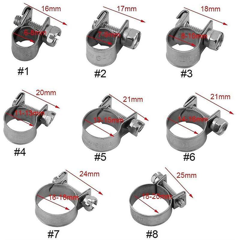 Application : convient pour l'agriculture, l'aviation, la manipulation de matériaux, la marine et la construction, convient pour tuyau d'air, tuyau d'eau, tuyau en silicone, tuyau de carburant, etc. Dimensions : épaisseur du matériau : 0,8 mm ; diamètre intérieur : 12 mm; Matériau : ces colliers de serrage sont fabriqués en acier au manganèse 65 Mn de... Contenu de l'emballage : 10 colliers de serrage Avantage : le design spécial répartit la force de serrage autour du tuyau, et est plus rentable que les colliers de serrage à fil unique Collier De Serrage En Acier Colliers De Serrage Namz Huile Durite 3/8''(9,5mm) Noir - Pièces Carburation Sur La Bécanerie Collier De Serrage Métal Durites silicone et multi carburant - Discount AutoSport Collier de serrage MroMax Description : 1., Convient pour tuyau d'air, tuyau d'eau, tuyau en silicone, tuyau de carburant, etc., 2., Ces colliers de serrage sont fabriqués en acier au manganèse 65 Mn de haute qualité, durables et ont une longue durée de vie., 3., Comment choisir la taille du collier de serrage : choisissez la taille avec la spécification maximale et le diamètre extérieur du tuyau le plus proche., 4., Par exemple, un tuyau de 35 mm, le collier de serrage de 44 mm peut également être serré à 35 mm, mais il faut beaucoup de serrage pour atteindre 35 mm, ce qui est fastidieux et laborieux. Mais si vous choisissez un collier de serrage de 38 mm, il suffit de quelques torsions pour serrer, ce qui permet d'économiser du temps et des efforts.