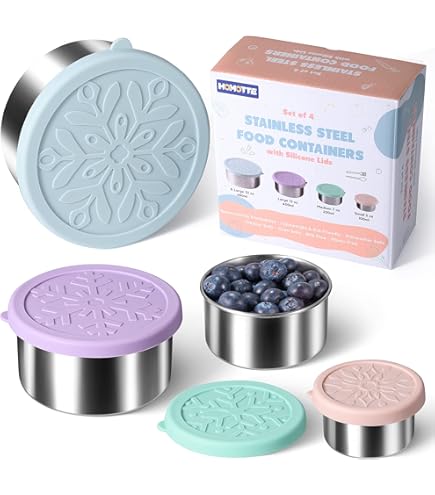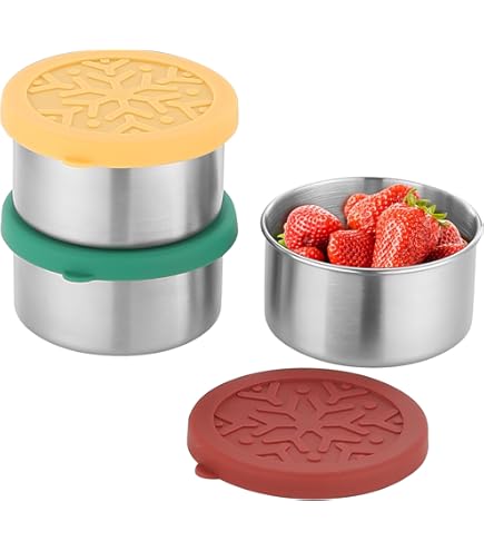 Pour garantir la norme de nos produits, les conteneurs sont conformes à la norme CPSC par une série de tests. Lot de 6 boîtes à goûter en acier inoxydable de 227 ml avec Remarque : Nettoyer avant et après utilisation. Lot De 6 Boîtes à Goûter En Acier Inoxydable Avec Couvercle En Passe au lave-vaisselle et au congélateur. Matériau : Acier inoxydable 304 18/8 de qualité alimentaire certifié par CPSC, non toxique, inodore 100 % silicone de qualité alimentaire, sans BPA, sans danger pour la famille et l'environnement. Grande capacité de 170 g pour répondre aux besoins quotidiens Empilez-les avec les couvercles pour économiser de l'espace. Caractéristiques : 100 % étanche avec le couvercle hermétique Ouverture facile grâce au couvercle en silicone. Grâce à l'excellente étanchéité à l'air, les boîtes à goûter peuvent contenir les aliments confortablement et les garder frais, ce qui est différent des récipients à déjeuner ordinaires. La combinaison du couvercle en silicone souple et de la poignée est facile à ouvrir pour les enfants. Ne pas chauffer les bols en acier inoxydable au micro-ondes. Les boîtes à goûter sont réutilisables et peuvent remplacer les gobelets jetables pour réduire l'impact sur l'environnement. Largement utilisé : chaque récipient mesure 7,5 x 7,5 x 5,5 cm, et 170,1 g (200 ml) est la capacité idéale pour l'emballage des collations. Idéal pour les enfants indépendants. Design anti-fuite : la rainure du couvercle en silicone avec la meilleure profondeur s'adapte fermement à la tasse, 100 % étanche sans renverser. Grâce à l'excellente étanchéité à l'air, les boîtes à goûter peuvent contenir les aliments confortablement et les garder frais, ce qui est différent des récipients à déjeuner ordinaires Certifié CPSC, sans BPA et non toxique. Il changera la donne pour votre routine de déjeuner et dites adieu au sac à dos collant tombé avec de la sauce fuite. Design adapté aux enfants : les motifs mignons et les couleurs vives augmenteront l'appétit de votre enfant. Les récipients de qualité supérieure pour enfants sont fabriqués à partir de matériau de qualité alimentaire et sans danger pour les membres de votre famille et l'environnement.