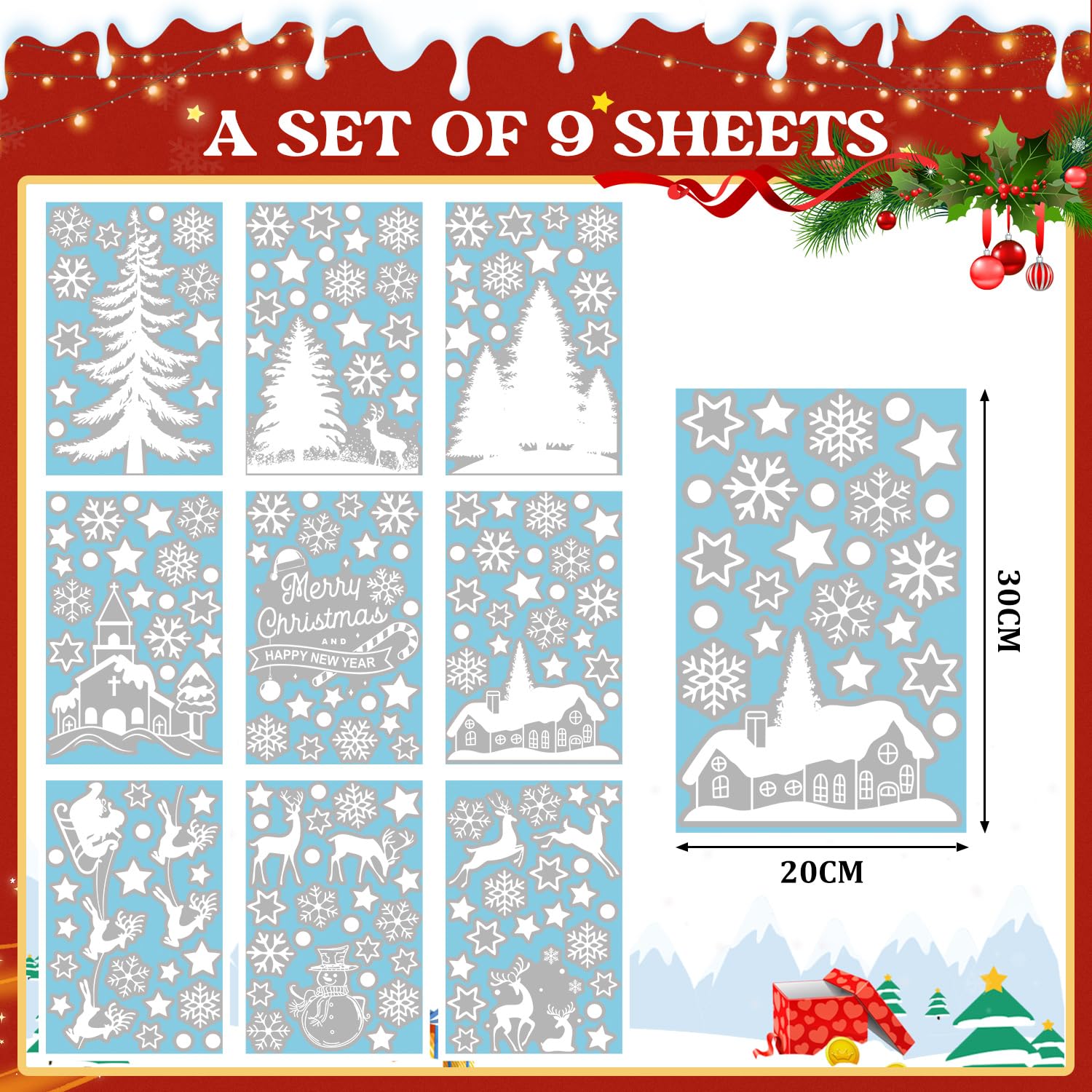 【Fonctions :】 - Un incontournable de Noël, un excellent choix pour créer une ambiance de Noël ! - Contient une variété de motifs d'éléments de Noël qui peuvent être réalisés dans différentes combinaisons. 【Un incontournable pour Noël】- Les images de fenêtres de Noël sont un excellent choix pour les décorations de Noël et peuvent créer une atmosphère de Noël dans les magasins, les bureaux, les restaurants, les chambres d'enfants, la maison et d'autres endroits. 【Scénarios applicables】- Peut être utilisé sur n'importe quelle surface lisse, telle que les fenêtres, le verre, les portes, les vitrines, les miroirs, les carreaux, les réfrigérateurs, etc. Description du produit 【Spécifications :】 - Contenu : 9 feuilles de 30 x 20 cm chacune - Matériau : PVC - Couleur : Blanc - Motif : sapin de Noël, bonhomme de neige, flocons de neige, renne, etc. 【Le forfait comprend :】 - 9 Feuilles Stickers Noël pour Fenêtre Avertissement De Sûreté Pour éviter le risque d'étouffement, gardez-le hors de portée des bébés, des enfants et des personnes âgées. Décorations de fenêtre de Noël : 9 autocollants de fenêtre de Noël, chaque feuille de papier mesure 30 × 20 cm. Décorez votre fête de Noël ou d'hiver avec... Vous pouvez utiliser votre créativité pour créer une variété de combinaisons avec votre famille et vos enfants. Contient de nombreux éléments de Noël tels que bonhomme de neige, sapin de Noël, renne et flocons de neige. L'eau permet de mieux adhérer., 4., S'il y a une petite bulle entre l'autocollant et la fenêtre, veuillez la gratter avec une carte avant de la lisser. N'ayez pas de colle, n'abîmez pas le verre et ne laissez aucune trace. Noël Autocollant Fenetre, Neige PVC Autocollants Stickers Flocons De Neige Amovibles Deco Vitres Noel Flocons De Noel Statiques Blanche Stickers Hiver Decoration Fenetre 82527768 Autocollant Fenetre Noel Decoration Noel Interieur Maison, Autocollant Noël Fenêtre Décoration De Noël Intérieur - Adsorption électrostatique, sans colle, facile à enlever sans laisser de traces et durable.