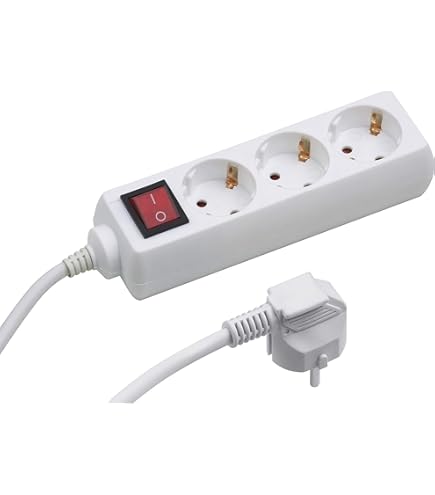 Multiprise 3 prises 1,4 m blanc interrupteur IP20 Détails du produit : Champ d'application : Tension nominale intérieure : 250 V Courant nominal : 16 A Classe de protection : IP20 Nombre de prises : 3 Type de câble : H05VV-F3G Section de conducteur : 1,5 mm² Type de connecteur : type F (fiche Schuko) Câble d'alimentation : 1,4 m Couleur : blanc Caractéristiques du produit : Connecteurs avec protection de contact améliorée pour plus de sécurité Contenu de la livraison : 1 pièce. Disposition des prises à un angle de 45°. La protection de contact accrue de fentes assure une plus grande sécurité.Caractéristiques du produit:• Avec la protection des enfants pour plus de sécurité• Avec bouchon de sécurité• la disposition des orifices un angle de 45 °• Connexion jusqu'trois appareils simultanément• Convient pour une utilisation en intérieur sec... Meister 3 prises, 1.4m, blanc, IP20 / 3 paquet La puissance de sortie est des bandes sans trop loin, pour une longueur de 1,4 m?tres, il peut ?tre flexible posé dans tous les domaines de l'intérieur du sec. Dans chaque cas, offrir trois prises de courant, disposés un angle de 45 °, assez d'espace pour votre équipement. La protection de contact accrue de fentes assure une plus grande... Rallonge Electrique 3m Meister 7430460 Multiprise 3 Prises – Câble De 2 M – Blanc – Fiche Extra Plate Et Interrupteur Lumineux – IP20 / Multiprise/Prise De Table/multiprise Avec Fiche Plate Multiprise Rallonge Interrupteur lumineux (2 broches) pour une utilisation économe en énergie de la barre , Avec prise de terre ultiprise Electrique, ultiprise Parasurtenseurs 4 Prises avec 2 Ports Multiprise : multiprise avec 3 prises | Produit de qualité supérieure avec câble épais et boîtier en plastique robuste Indice de protection IP20 : convient pour une utilisation en intérieur sec. Éteindre : interrupteur légèrement encastré et éclairé avec point de pression fixe pour allumer et éteindre - Empêche la consommation d'énergie inutile