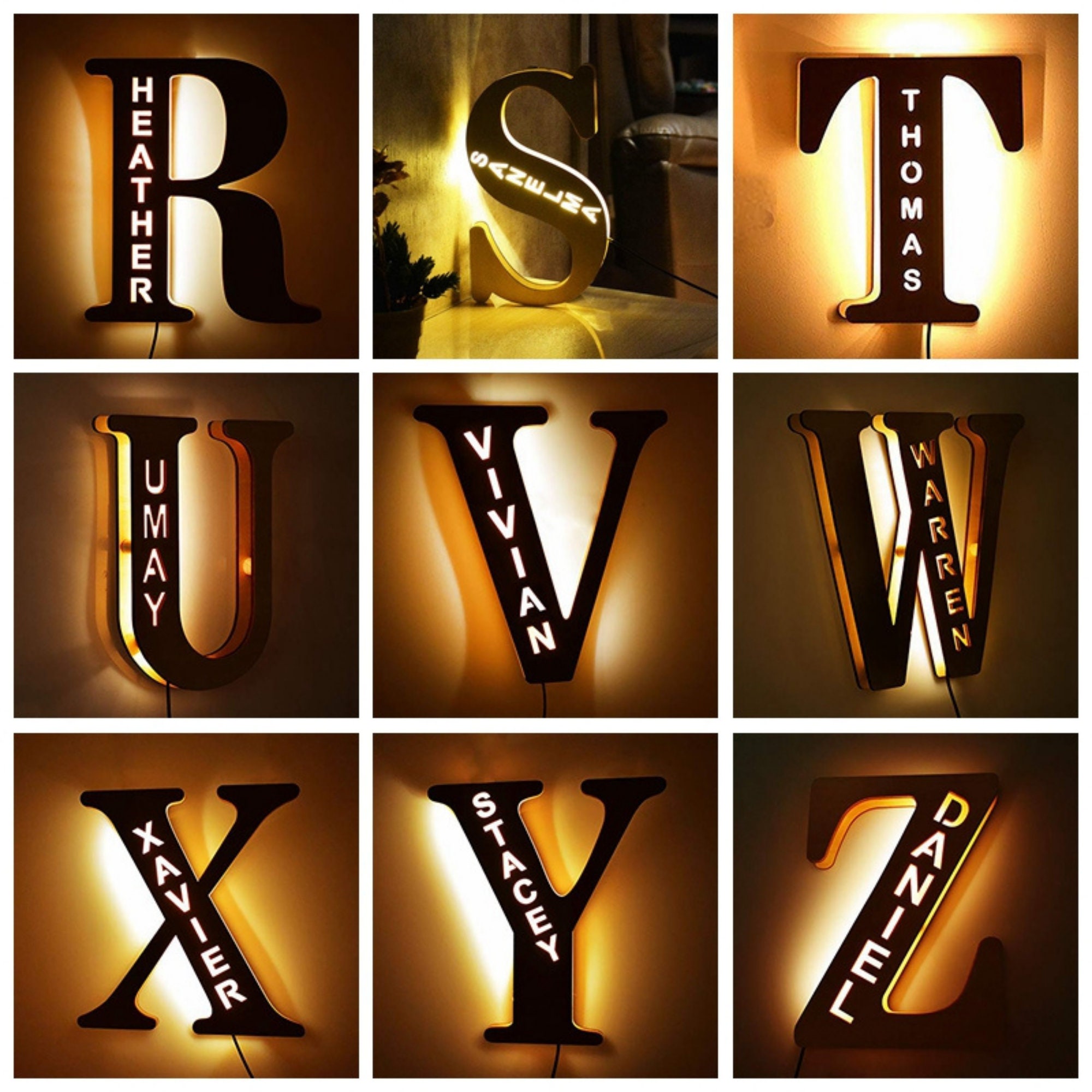 Veilleuse Rechargeable En Forme De Montgolfière En Forme De Chaton Commande Tactile Lumiere Chaude Veilleuse De Chambre Cadeau Pour Bebe Et Enfant 96304103 Giftove Veilleuse Bébé Personnalisé avec Préno & Date, Cadeau... Veilleuse De Lettres Lettre En Bois Personnalisée Veilleuse Nom Lampe De Chambre Lettre En Bois Avec Lumière Offrez à votre proche un cadeau unique ! Délai de fabrication : 3 à 5 jours ouvrés. Cette jolie et créative lampe initiale comporte votre nom dans des découpes et peut être montée au mur. Parfait pour créer une ambiance cosy mais avec un peu de créativité et idéal aussi pour la chambre des enfants. Projette une lumière