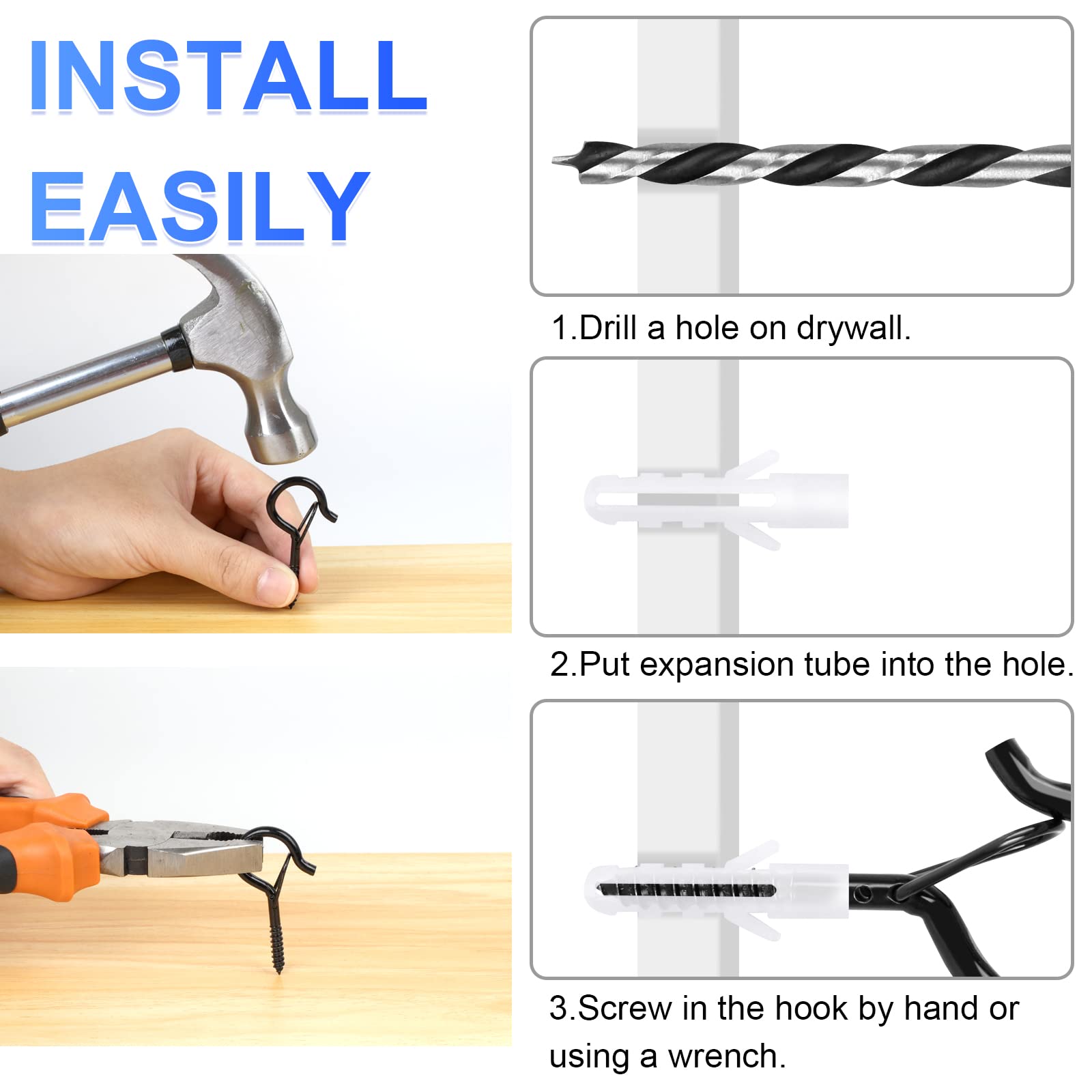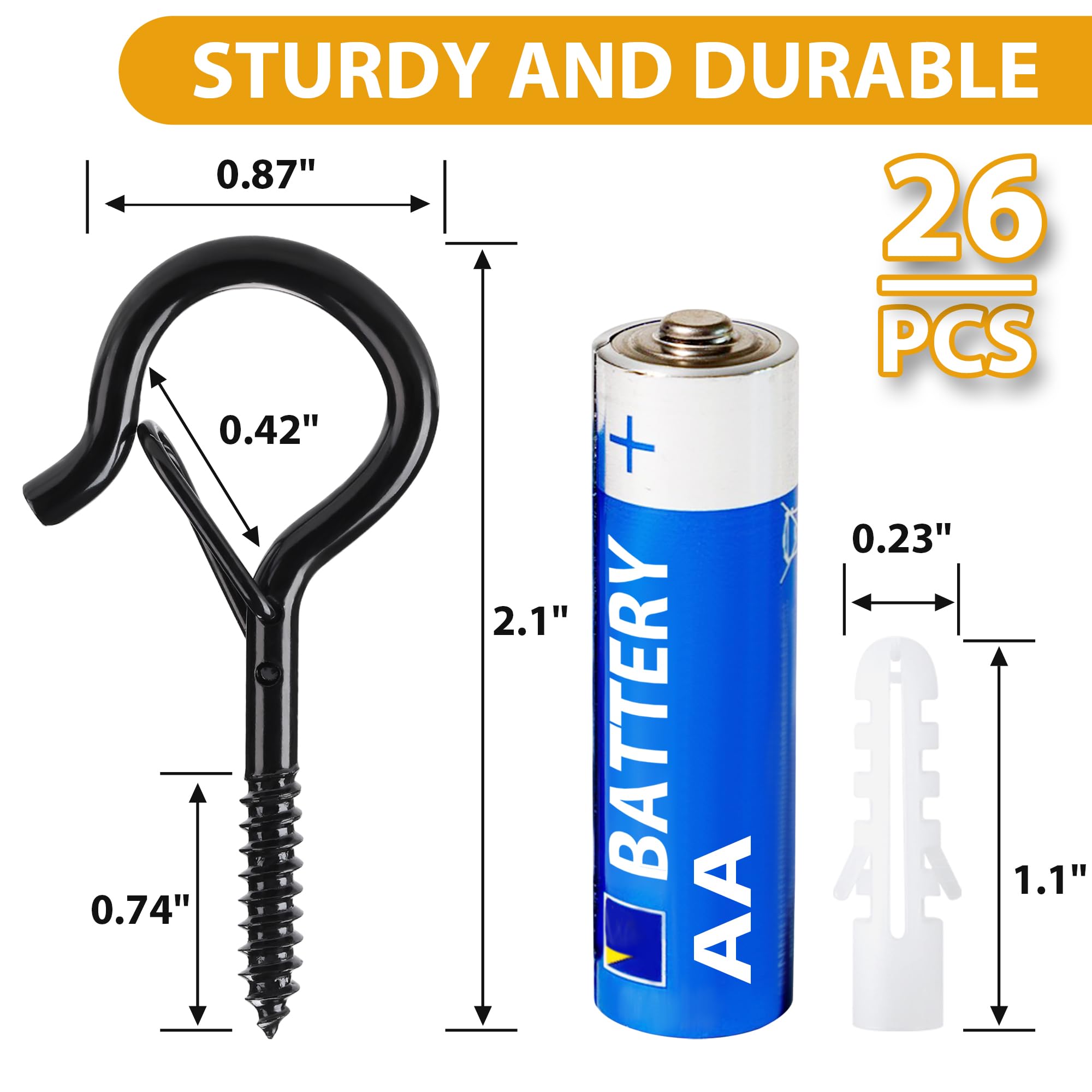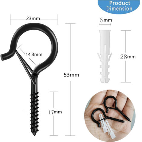 Lot De 16 Crochets À Vis, Noirs Avec Boucle De Sécurité