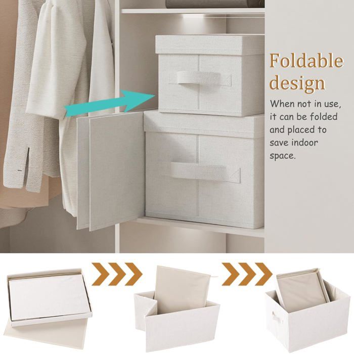 Que vous réorganisiez une armoire ou récupérez des articles sur une étagère haute, vous apprécierez à quel point il est simple et ergonomique de déplacer ces boîtes de rangement dans votre maison. HEFTMAN Boîtes de Rangement Tissu Beige 33x33x33cm Transformez votre maison avec les paniers de rangement pliables HEFTMAN en forme de cube, un ensemble de 6 solutions de rangement polyvalentes conçues pour faire du désordre une chose du passé. Les boîtes (33 x 33 x 33 cm) conviennent au compartiment avec une ouverture de 33 cm ou plus. Une conception pliable pour un rangement plus facile en cas de non utilisation. La poignée à œillet vous permet de les retirer des étagères. Les coutures bien finies renforcent la qualité du produit Mesurant 33 x 33 x 33 cm, ces inserts cubiques astucieux s'adaptent parfaitement à la plupart des unités de rangement, étagères ou armoires, ce qui les rend parfaits pour chaque pièce de votre maison. Parfaitement dimensionnées et très polyvalentes : maximisez votre potentiel de stockage avec un lot de six boîtes de rangement pliables beiges, chacune parfaitement dimensionnée de 33 x 33 x 33 cm. Non seulement ils vous aident à garder votre maison organisée, mais ils ajoutent également une touche d'élégance discrète à votre espace de vie. Conçues pour la résistance et la durabilité, chaque boîte en tissu pour rangement cube dispose d'un noyau en carton robuste de 1,9 mm, enveloppé dans du tissu non tissé de haute qualité. Boîtes Pliantes Rangement Boîtes De Rangement SONGMICS - Lot De 6 Cubes 30x30x30 Cm - Tissu Non-tissé Beige - Pliables - Pour étagères Et Armoires Cube Rangement Ce design bien pensé signifie que vous pouvez les garder soigneusement rangés jusqu'à ce qu'ils soient à nouveau nécessaires, ce qui vous permet d'économiser de l'espace et de garantir que votre maison reste bien rangée et organisée. Fonctionnalité élégante pour n'importe quelle pièce : avec leur finition beige élégante et leur esthétique moderne, ces boîtes cubiques pliables pour unité de rangement se fondent sans effort avec n'importe quel décor. Solides, durables et construites pour durer : fabriquées en carton de haute qualité (1,9 mm d'épaisseur) et recouvertes de tissu non tissé de qualité supérieure, ces boîtes de rangement cubiques sont aussi robustes qu'élégantes. Boite Rangement 33 X 33 6x Boîte De Rangement En Tissu à Acheter Paniers Et Bo��tes De Rangement Lot de 6 cubes de rangement en tissu pour ranger et réduire le désordre de la maison ou du bureau. Fabriqués en tissu tendance, résistant et respirant avec... Design pliable pour économiser de l'espace : lorsque vous ne vous en servez pas, ces cubes de rangement pliables se replient à plat en quelques secondes pour un rangement compact. Conçus pour s'adapter parfaitement à la plupart des unités de rangement cubiques, armoires ou étagères, ils permettent d'organiser votre maison sans effort.