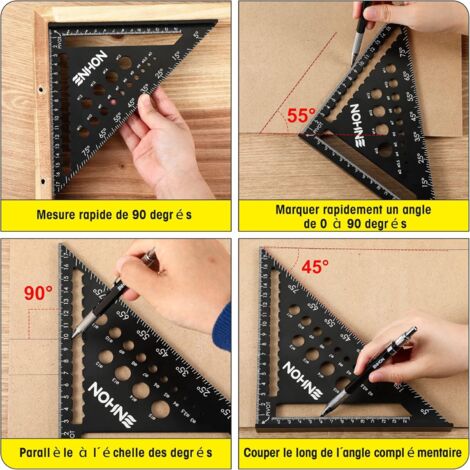 Mesure précise : règle triangulaire bleue de charpentier qui peut mesurer la longueur latérale de 0 à 180 mm. Découvrez nos offres Équerre menuisier multi-fonctions 180 mm : large sélection de produits au meilleur prix | Livraison gratuite à partir de 10€* | Entreprise française | Paiement 4x possible Sur le devant du triangle, un tableau de conversion rapide est gravé pour gagner du temps et améliorer l'efficacité du travail. Equerre Charpentier Équerre De Charpentier - 180 Mm - Triangle Métrique En équerre Charpentier Le bord en forme de T est fixé à la planche afin que vous puissiez couper la planche rapidement, facilement et avec précision. Equerre métrique aluminium - triangle degré - équerre bloc - triangle... Équerre de charpentier en polycast, 12 po La règle carrée a une dureté élevée, une bonne finition, n'est pas facile à rouiller, à user et à casser et est durable. Règle triangulaire polyvalente : avec l'angle de charpentier, vous pouvez non seulement mesurer la longueur des côtés, mais aussi déterminer rapidement des angles de 0 à 90 degrés.