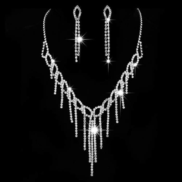 Le pendentif suspendu crée un effet visuel captivant qui attire tous les regards. La monture argentée assure durabilité tout en maintenant une apparence luxueuse. Le design universel plaît à toutes les femmes, quel que soit leur âge ou style personnel. Parure Bijoux Femme Mariage Cristal Mariée Collier Boucle d'oreille et Bracelet Ensemble Mariage Fiançailles Mariée Demoiselle D'honneur ; Or · €12.99 · In stock... Conception élégante: Cette parure présente un motif circulaire sophistiqué avec un cristal central entouré d'une couronne étincelante. Ils rehaussent aussi bien une tenue décontractée qu'une toilette habillée. CaractéristiquesDimensions: Longueur: 42 cmHauteur: 5 cmComposition: 100% Métal rhodiésStrass: cristalGenre: femme Sa présentation élégante impressionnera la destinataire. Présentation soignée: Cette parure constitue une attention touchante qui marque les moments importants. La silhouette géométrique circulaire représente une tendance actuelle très appréciée. Parure bijoux, boucles d'oreilles collier - France Collier Strass Soiree Bijoux Mariage FDEETY Parure De Bijoux Strass Pour Femme | Collier Collier Strass Mariage Parure de bijoux couronne de diadème de mariée en cristal - 3 pièces collier, boucles d'oreilles et accessoires de cheveux en strass pour femme, mariée de... Style intemporel: Cette parure allie simplicité contemporaine et élégance classique.