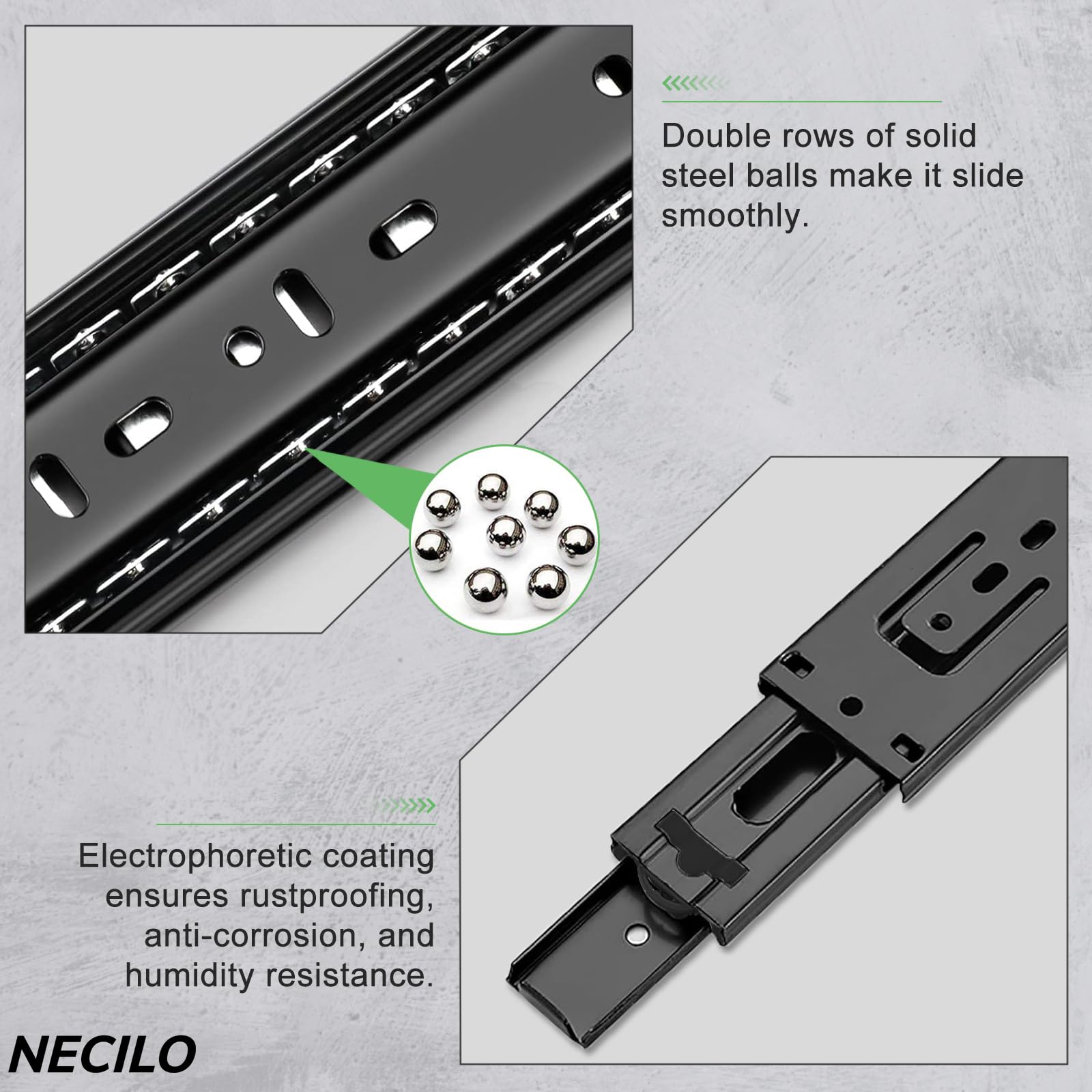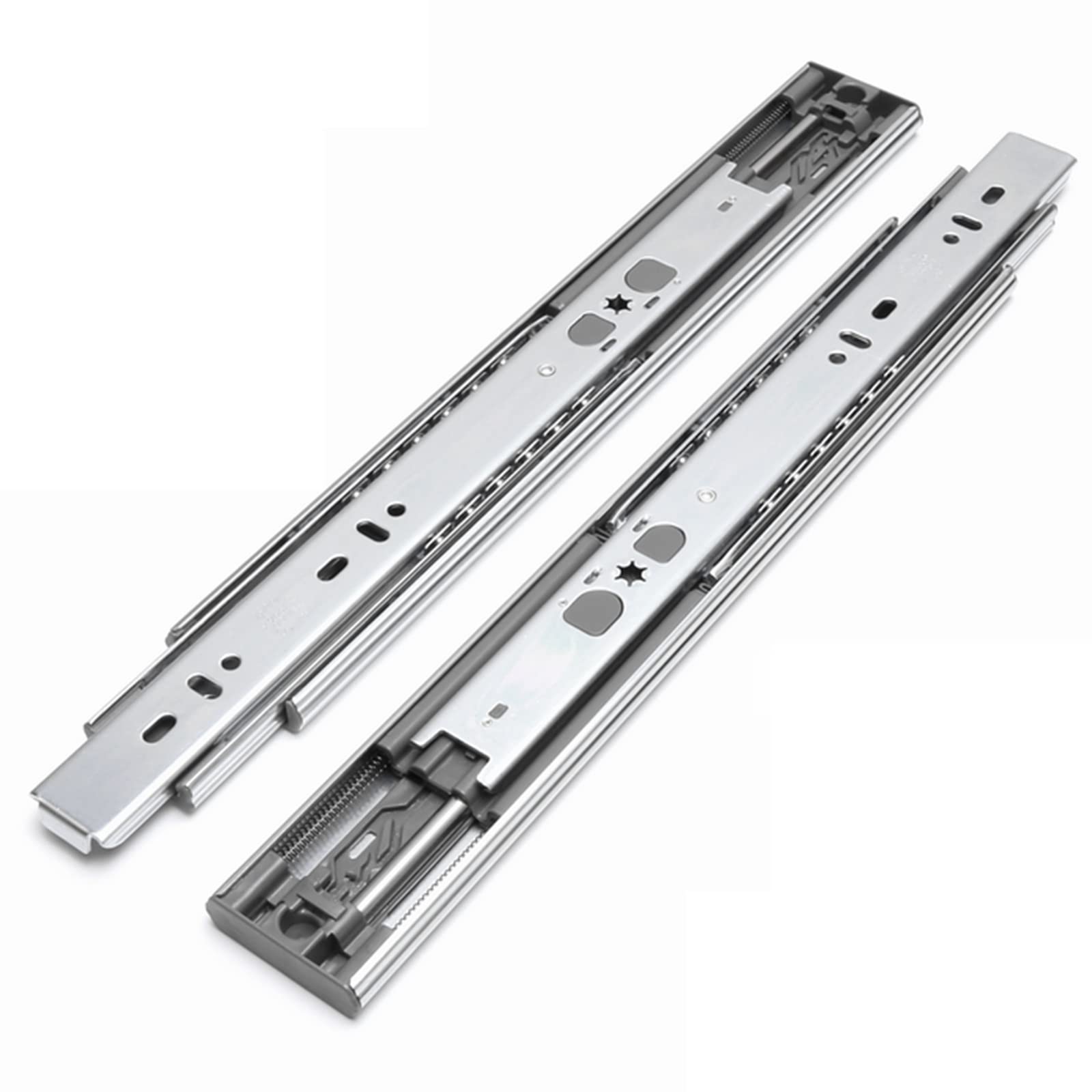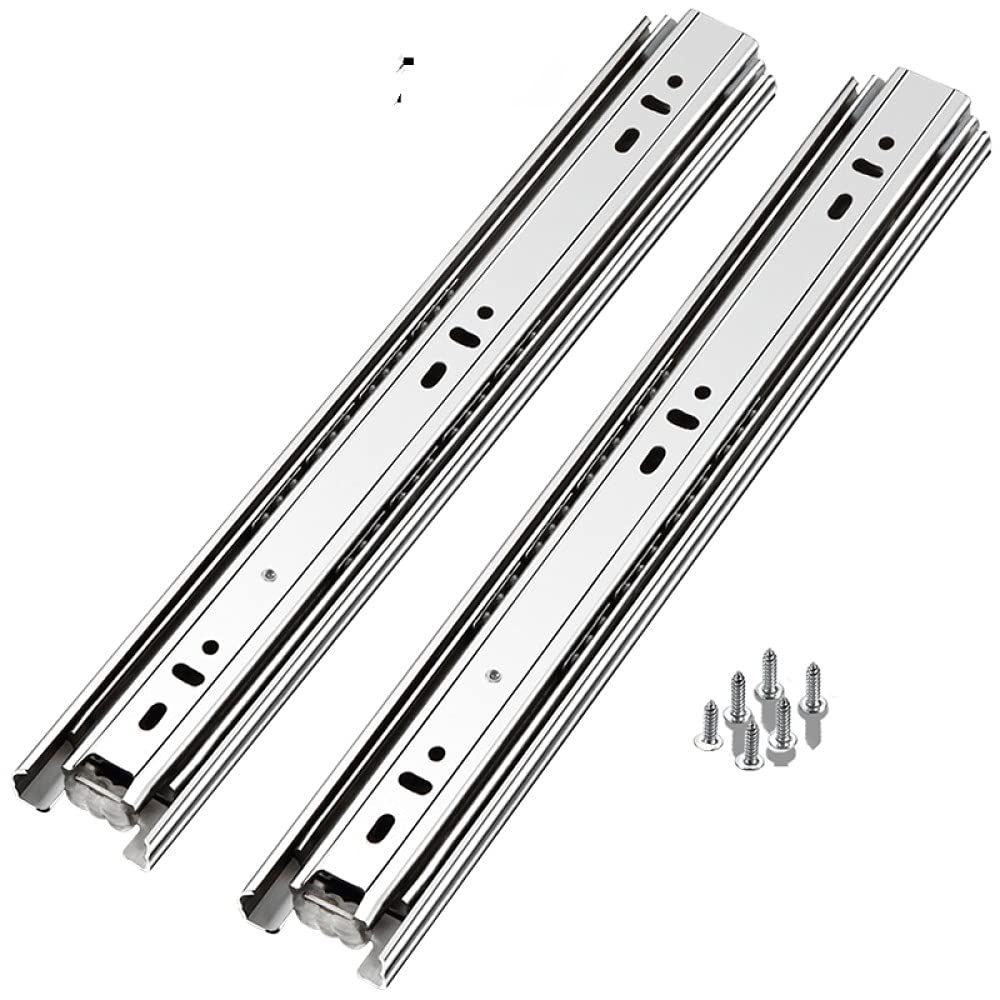 Glissière A Roulement Pour Tiroir Rail De Glissière De Tiroir En Acier Inoxydable 200-600mm Roulement à Billes D'exposition Complet Trois Sections Rail De Guidage Pour Armoire De Cuisine, 12 Pouces (300mm Glissière Tiroir Description : Produit de qualité supérieure., Couleur : argenté. Matériau de la glissière : plaque d'acier laminé à froid/tôle galvanisée respectueuse de l'environnement. Glissières de tiroir à montage latéral en acier inoxydable La capacité de charge maximale de chaque paire est de 120 kg, et la structure est stable et indéformable, adaptée aux environnements extérieurs complexes et... Facile à utiliser : les petits tiroirs coulissants sont conçus avec plusieurs positions de trous fixes pour une installation et un réglage faciles. Conception : billes en acier inoxydable dans la rainure de positionnement de la boule qui peuvent stabiliser la direction de glissement de la bille, ne déraillent pas facilement, et elles sont résistantes à l'usure, dures et lisses. Fonction : la fonction de fermeture douce évite le bruit pendant la poussée et la fermeture lente empêche les mains de votre bébé d'être coincées par le tiroir. Contenu : 1 paire de glissières à billes en acier pour tiroir., Remarque : 1., En raison de l'éclairage et des paramètres propres à chaque écran, la couleur de l'article peut légèrement différer de celle de la photo., 2., Les mesures étant prises à la main, les dimensions indiquées peuvent varier de 0,5 à 2 cm. Applications : tiroirs en bois et en acier, tels que les armoires, armoires de classement de meubles, casiers, etc. Achetez VEVOR Glissière de tiroir à extension complète, 1 paire, coulisse de tiroir verrouillable, 600 mm, capacité de charge 113,4 kg, rail coulissant à montage latéral avec roulement à billes et verrou au prix le plus bas, livraison en 2 jours, retour sous 30 jours. Largeur de la glissière : 17 mm.