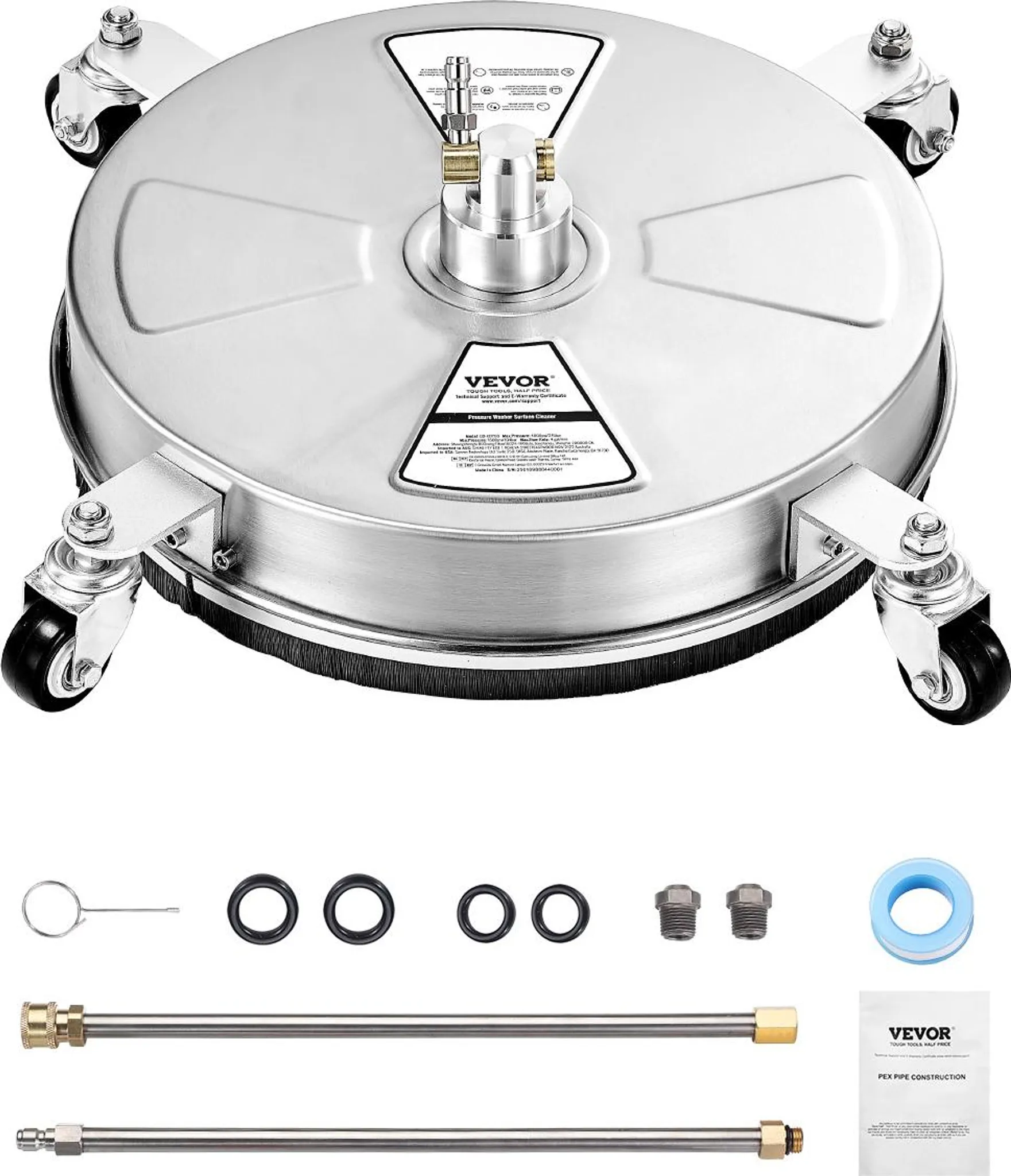 4 roulettes universelles pour un mouvement fluide., 4., Compatibilité et installation : ce nettoyeur de sol dispose d'un pistolet à gâchette, attaché à un connecteur rapide de 1,9 cm. 1., 【Nettoyeur de surface de 38,1 cm 】 : le nettoyeur haute pression de 38,1 cm offre une zone de nettoyage de qualité commerciale de 38,1 cm de large. Nettoyeur De Surface De 38,1 Cm Avec 4 Roues, Accessoire De Nettoyeur Haute Pression En Acier Inoxydable Pour Allées, Trottoirs, Terrasses, Connecteur Idéal pour nettoyer les taches tenaces sur les grandes surfaces planes telles que les terrasses, les allées, les trottoirs. Les poils résistants contrôlent la surpulvérisation. Nettoyeur De Terrasse Tool Daily Nettoyeur De Carrosserie à Double Fonction, Nettoyeur De Nettoyant Multi Surface Peut également être utilisé sur des surfaces verticales telles que les murs en briques, le stuc et d'autres revêtements. Éliminez la saleté avec le nettoyeur de surface à pression doté d'un disque de 15, de 4 000 PSI, d'une connexion rapide et de buses rotatives à 360° pour un nettoyage efficace Le nettoyant de surface plane est adapté pour les applications d'eau froide et chaude., 5., 【Large application】- Ce nettoyant de surface pour nettoyeur à pression à gaz est parfait pour nettoyer les surfaces horizontales, telles que les terrasses, les terrasses, les trottoirs, les allées, les terrasses de piscine, etc., 1., 【Nettoyeur de surface professionnel】 : le nettoyeur de surface haute pression de 38,1 cm offre une zone de nettoyage de qualité commerciale de 38,1 cm de large. Le nettoyeur de surface de 38,1 cm dispose de deux jets d'eau à pression qui tournent rapidement pour briser la saleté et la crasse sans laisser de traces ou de rayures sur les surfaces. Conçu avec un pistolet à gâchette pour connecter le tuyau du nettoyeur haute pression, cette double poignée est réglable en angle. Pression de fonctionnement jusqu'à 4000 psi. Pression minimale requise : 2000 psi, débit min : 1,8 GPM, débit maximal : 3,7 GPM., Plus efficace : le nettoyant de surface de 38,1 cm dispose de jets d'eau à double pression qui tournent rapidement pour briser la saleté et la crasse sans laisser de traces ou de rayures sur les surfaces Achetez Nettoyeur de surface pour nettoyeur haute pression, 24'', pression maximale de 4000 PSI par 2 buses pour le nettoyage des entrées, des trottoirs, cadre en acier inoxydable avec double H rotatif. Il est livré avec les accessoires nécessaires pour une installation facile. Fonctionnement efficace : ce nettoyeur de surface de 4 000 psi dispose d'une double poignée avec couvercles en caoutchouc pour une utilisation confortable.