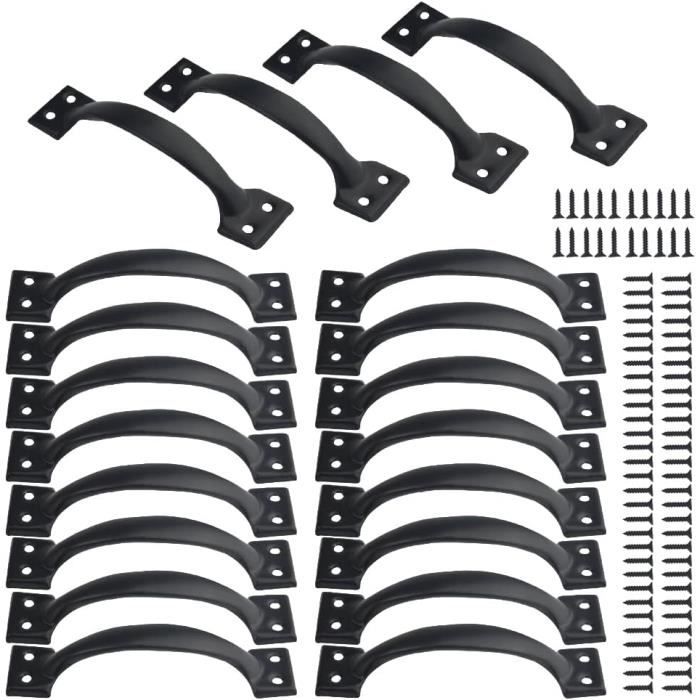 Spécification: Matériau : Fer Taille totale : 4., 7 x 1., 2 Inch/ 120mm x 30mm ; Espacement des trous : 4., 1 Inch/ 104mm Taille des vis : M3 x 14mm Couleur : noir Caractéristiques: 1., Fabriqué en fer de haute qualité, durable et léger., 2., la surface est lisse. Les poignées de porte de grange de style rétro ajoutent un charme rustique à votre maison Le paquet comprend: 20 x Poignées de porte de portail 80 x vis Confortable au toucher et sûr Taille : centre du trou : 128 mm, longueur totale : 140 mm, assurez-vous que l'espacement des trous de l'armoire avant l'achat 2X poignées de Porte de Grange, poignée de Porte de Salle de Bain... Poignée Casserole 2X Poignées De Porte De Grange, Poignée De Porte De Salle De Bain Poignée Meuble Vous aurez une prise confortable et n'endommagerez pas vos mains., 3., La poignée apporte de la modernité à votre maison, et c'est aussi la décoration., 4., Convient pour la porte de l'écran, les armoires, les placards, les tiroirs, etc. Poignées De Meuble Poignée En Plastique Vis de même couleur incluses, vous pouvez l'installer sur votre porte vous-même Apparence délicate : la poignée de porte de portail offre un aspect ergonomique mais élégant. Large application : la petite poignée de porte solide est adaptée pour une porte moustiquaire, une porte de portail, une porte de garage, une porte de grange, une clôture en bois ou un portail extérieur, etc.