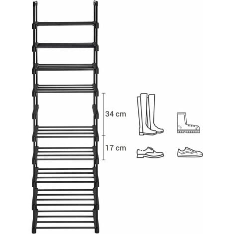 Métal robuste et durable : l'étagère à chaussures à 5 niveaux est fabriquée en tube métallique robuste et lisse avec des connecteurs en plastique de haute qualité résistants à la corrosion. Dimensions du produit : la taille de 90,4 x 31 x 89 cm, peut être placée dans la cuisine et dans la vaisselle. Outre les chaussures, ce meuble à chaussures moderne peut contenir des chapeaux, des livres, des sacs, des petits accessoires et des articles divers pour maximiser votre espace Style industriel :]Le plateau en bois élégant de couleur brun rustique et le cadre en métal robuste s'accordent avec tout style de maison. Cette étagère de rangement polyvalente peut être utilisée comme étagère de rangement pour le salon, étagère à chaussures ou étagère de cuisine Caractéristiques : Étagère à chaussures, constituée d'un cadre en acier et d'un plateau épais, est durable et ne se déforme pas Plateau en bois peut supporter jusqu'à 40 kg et chaque étagère peut supporter 10 kg Patins antidérapants réglables ajoutent de la stabilité et protègent votre sol des rayures Deux sangles empêchent les basculements et créent un environnement sûr... Etagere Chaussure Conforama Étagère à Chaussures En Métal 9 Niveaux Pour 50-55 Paires Avec Crochets Etagere Chaussure Costway Plus grand espace : cette étagère à chaussures extensible peut contenir jusqu'à 20 paires de chaussures. Étagère à chaussures à 3 niveaux Étagère à chaussures en métal empilable pour en Dans l'entrée peut rester propre et bien rangé. Multifonction : l'étagère à chaussures noire dispose de crochets de suspension qui vous permettent d'accrocher des articles couramment utilisés sur les crochets latéraux tels que les parapluies, ceintures, clés, sacs, chapeaux, sacs de courses, raquettes, etc L'étagère dans la chambre peut mettre divers objets dans le placard pour garder les vêtements propres et bien rangés.