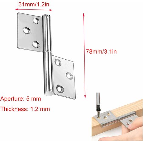 Ce sont des accessoires parfaits pour les portes, les fenêtres, les portes d'armoires, les boîtes, etc. Matériaux de haute qualité : ces charnières en acier inoxydable sont en acier inoxydable, et la méthode de traitement selon laquelle plusieurs processus sont effectués en même temps garantit l'excellente performance du produit, solide et durable, anticorrosion et résistant à l'usure, pas facile à se déforme, ne rouille pas facilement et peut être utilisé pendant longtemps. Conception détachable : il adopte une conception fendue, la charnière en acier inoxydable peut être tournée et l'installation est rapide sans fente, ce qui est pratique pour l'installation et le démontage de la porte. Charnière universelle acier inoxydable pour meuble, L.40 x l.120 mm | Leroy Merlin Spécification : Taille: 78*31mm/3*1., 2 pouces Couleur : Argent Matériau : acier inoxydable Le forfait comprend : 4 charnières en acier inoxydable Charniere Porte Lourde YZSZ 4 Pièces Pliable Charnière En Acier Inoxydable Paumelles Meuble Fenetre Pvc Installation pratique : la charnière en acier inoxydable a 6 trous d'installation, ce qui est pratique et rapide à installer, et le vantail de la porte peut être installé et démonté directement sans retirer les vis. La forme stable combine diverses connexions, ce qui est très résistant aux balles et durable. Connexion fixe : La charnière en acier inoxydable peut être utilisée comme support structurel pour les portes, les fenêtres ou les armoires. Métal de haute qualité] Cette charnière en acier inoxydable est fabriquée en acier inoxydable de haute qualité, avec une construction épaisse et renforcée, ce qui la rend durable, résistante à l'usure et à la corrosion. De plus, elle est robuste et indéformable,avec un aspect simple, pratique et élégant.[Conception séparée et indépendante] Cette charnière en acier inoxydable...