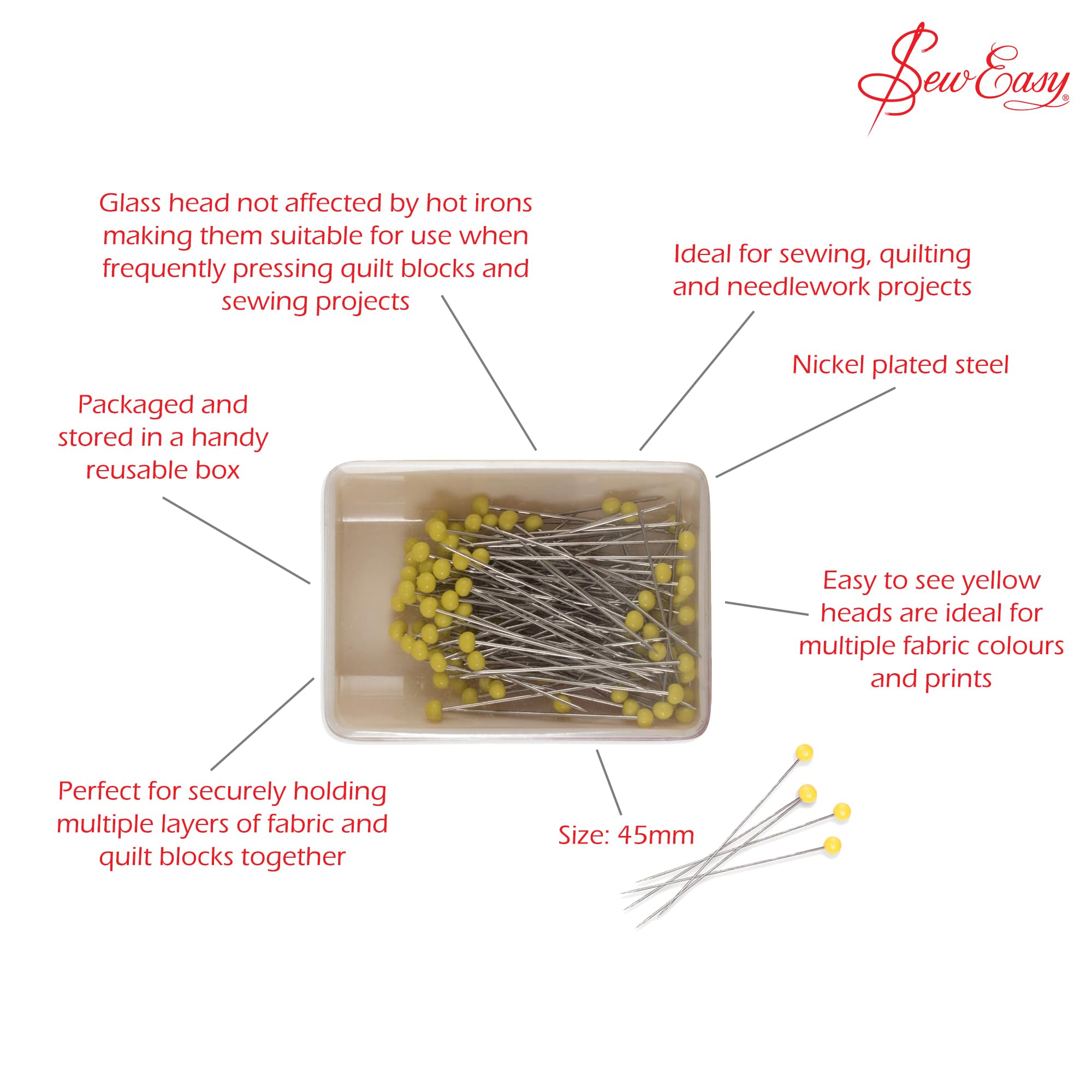 Améliorez votre jeu de matelassage avec les épingles à tête en verre Sew Easy Quilters Conçues pour la précision et la durabilité, ces épingles à tête en verre de 45 mm sont l'outil par excellence pour tout quilter. Visibilité améliorée : les têtes en verre jaune vif rendent ces épingles facilement visibles sur divers tissus, minimisant le risque de perte ou d'accident. Ces épingles disposent d'une tête en verre imperméable aux fers chauds, ce qui facilite la pression. Cutter rotatif Prym Love Omnicut 45 mm. Sécurité automatique, poignée ergonomique, ajustable selon l’épaisseur du tissu. Idéal pour couture, patchwork, quilting WPCASE Broches de Bisutería Broches para Vestidos Broches Vintage para... Notre Top 10 Des Broches Patchwork 45 Au France - Juin 2025 Vous vous inquiétez de la chaleur ? N'ayez pas peur. Broches metálico magnéticos a presión mide 18 mm color dorado x 4 Résistant à la chaleur : les têtes de verre ne sont pas affectées par les fers chauds, assurant durabilité et stabilité lors du pressage et du repassage. Améliorez votre jeu de matelassage avec les épingles à tête en verre Sew Easy Quilters dès aujourd'hui Rangement organisé : emballé dans une boîte en plastique réutilisable, gardant vos épingles en sécurité et facilement accessibles pour votre prochaine activité créative.