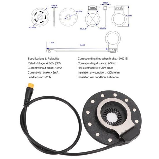 Spécifications :Type d'article : Capteur d'assistance pour vélo électriqueMatériau : Plastique PCDurée de vie électrique du hall : 20 M de foisTension nominale : 4,5-6 V (DC)Pas de courant de freinage : Avec courant de freinage : Condition sèche d'isolation : 20 M ohmConditions humides d'isolation : 2 M ohmTemps de freinage correspondant : Distance correspondante : 2-3 mm Comment utiliser :Il est installé sur la pédale droite et l'interface étanche peut être connectée au contrôleur. BICYCLETTE LECTRIQUE P DALE Pas-System Assistant Capteur 5/8/12 Aimants Speed EUR 8,59 - PicClick FR Signal d'impulsion : le signal d'impulsion du capteur auxiliaire du vélo électrique est installé par défaut sur le côté droit de la pédale, et il y a 12 signaux d'impulsion dans un cercle. Drfeify Pédale De Vélo électrique 12 Aimants Capteur D'assistant Indicateur LED : le capteur est équipé d'un indicateur LED, lorsque la pédale avance, le capteur émet un signal d'impulsion, la LED est à un niveau bas (avec ou sans signal d'impulsion), donc la LED ne clignote pas, ce qui améliore la sécurité et la commodité de conduire un vélo électrique. CAPTEUR D'ASSISTANCE DE PéDale de VéLo éLectrique 12 Aimants SystèMe PAS de9748 EUR 7,60... Capteur d'aide à la pédale de vélo électrique avec 5/8/12 La puce filtre et reconnaît les signaux d'impulsion pour déterminer le sens de rotation. Liste des paquets : 1 x câblage du capteur1 x feuille de capteur