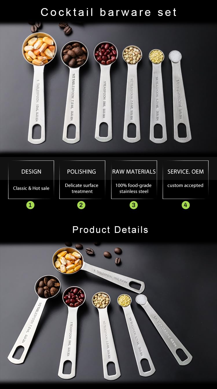 Chaque cuillère est finement fabriquée à partir d'une seule pièce d'acier inoxydable solide et durable qui est résistant aux taches et à la rouille, avec précision gravée facile à lire qui ne s'usera jamais. Gravure métrique américaine. Équilibre précis ; têtes de cuillère rondes et poignées parfaitement lestées, finition en acier inoxydable brossé satiné de haute qualité pour une longue durée de vie., Ne rouille pas. Doseur à cocktail, doseur à cocktail en acier inoxydable 20/40 l tasse Contenu : 6 tailles pratiques, 1/8 cuillère à café, 1/4 cuillère à café, 1/2 cuillère à café, 1 cuillère à café, 1/2 cuillère à soupe et 1 cuillère à soupe.Matériau sûr : ne vous inquiétez pas de voir aucun signe de rouille ruiner votre appétit.Lavables et faciles à ranger : passent au lave-vaisselle, vous pouvez les imbriquer ensemble pour économiser de l'espace.Gagnez... Cuillere Doseuse Hulless Lot De 6 Cuillères à Mesurer Précises En Acier Inoxydable Cuillère Doseuse La mesure raffinée garantit un goût parfait des aliments à chaque fois. Les cuillères à mesurer Hulless sont fabriquées en acier inoxydable 18/8, ce qui signifie que nos cuillères ne rouillent jamais et peuvent être placées dans le lave-vaisselle après utilisation. et 1 cuillère à soupe et facilement reliée par un anneau unique en forme de D qui aide à garder les cuillères ensemble après une journée complète de cuisson ou de cuisson. Outils de mesure pour mesurer les ingrédients secs et liquides. Chaque mesure est gravée sur la poignée de chaque cuillère, il n'y a pas de devination lors de l'ajout d'épices à vos plats.