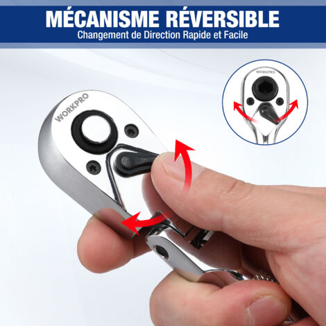 Polyvalent: tournevis à cliquet a une conception de machine à fente pour accueillir 2pcs 18mm embouts de tournevis (non inclus), peut accepter 1/4 embouts de tournevis hexagonal qui peuvent être fixés en toute sécurité pour un couple plus élevé. Système à cliquet réversible: Mini cliquet assure un réglage en douceur de cliquet bidirectionnel et le fonctionnement d'une seule main, il suffit de composer le levier de pouce pour alterner entre les aiguilles d'une montre et dans le sens inverse de serrer et desserrer les vis. Large application : les clés à cliquet sont idéales pour les appareils ménagers, les meubles, l'automobile, l'utilisation industrielle, la réparation électronique, les jouets et l'artisanat, le projet d'amélioration de l'habitat. Clé à plaque réversible en acier allié de haute qualité, pas facile à endommager, résistant à la rouille et ux types de clés à cliquet à tête plate et coude, système à cliquet commutable à 16 dents pour assurer un cliquet bidirectionnel lisse et un réglage précis.La clé à cliquet peut être retournée dans les deux sens, avec une simple poussée, le tournevis peut... Ce mini cliquet réversible (ça marche dans les deux sens) avec tête à 90° se faufile partout. Compatible avec les embouts hex 1/4. Parfait pour réparer ton... 2pcs Set Mini Clé à Cliquet Set Tournevis 90° Compensé Kit 2 Mini Clés à Cliquet 90° Treki - Tournevis Offset