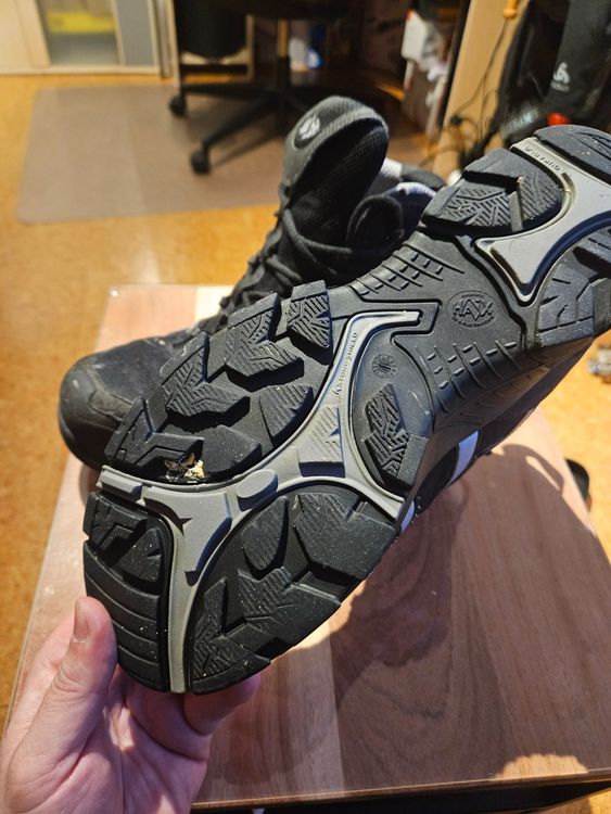 Que vous travailliez à l'intérieur ou à l'extérieur comme artisan, ces chaussures de travail imperméables et respirantes feront bénéficier vos pieds d'une sensation de bien-être, même après une journée de travail fatigante, grâce au confort obtenu par une forme s'ajustant parfaitement. C'est ce qui fait de ce modèle des chaussures professionnelles pratiques pour le personnel employé dans la production, les magasiniers et les menuisiers. Ces chaussures font partie des équipements de travail qui vous offriront le plus grand confort climatique tout au long de l'année. Tes pieds restent au sec et tu restes en bonne santé, car le HAIX Black Eagle Safety 40 Mid black/silver est durablement imperméable. Les Black Eagle Safety 40 Mid HAIX sont des chaussures de travail, souples, légères et sûres, conçues pour votre sécurité. C'est ce que garantit la doublure intérieure respirante qui conduit la chaleur et l'humidité à l'extérieur. Antidérapant grâce à l'Anti Slip Dans la Black Eagle Safety 40.1 mid/black-silver, tu restes bien stable dans toutes les situations. Pour que tu ne dérapes pas, la semelle de la Black Eagle Safety 40.1 mid/black-silver avec son mélange de caoutchouc spécial et la structure innovante de la bande de roulement t'offre une résistance au glissement et une adhérence extrêmement élevées... C'est pourquoi vos pieds resteront frais et n'enfleront pas, même après que vous aurez porté ces chaussures de travail pendant des heures. Le système HAIX Climate met à profit le mouvement de pompage qui se produit pendant la marche et transporte ainsi l'humidité aux ouvertures de ventilation, placées sur la tige et sur la languette. Ces chaussures de sécurité HAIX protègent efficacement de la gadoue et de la pluie. La meilleure protection pendant le travail Ces chaussures de travail HAIX imperméables associent confort et forme à la prévention des accidents et à la sécurité au travail. chaussures de sécurité de classe S3 offrent donc une protection et un confort maximum dans les environnements de travail humides et difficiles Black Eagle Safety 40 Mid Black/silver, Moderne-sportif Un confort climatique pour toutes les saisons Lorsque vous devrez travailler à l'extérieur, vos pieds seront protégés de façon optimale.