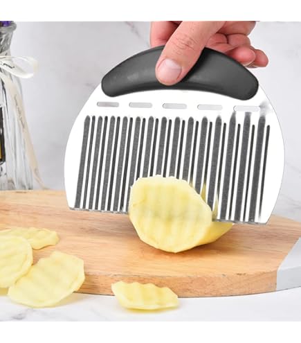 Avec ce couteau à lame ondulée, vous pouvez faire vous-même des frites pour vos enfants et votre famille. Cela rend la nourriture très attrayante et intéressante. Petit et portable, facile à stocker, parfait pour la cuisine et une utilisation quotidienne. Pas besoin d'acheter des frites. Idéal pour couper pommes de terre, légumes, fruits, gaufres, salades, etc. Ce couteau ondulé peut couper les légumes et les fruits en formes ondulées et transformer les aliments en petites œuvres d'art. Coupe-frites En Acier Inoxydable, Coupe-pommes De Terre Avec Des Lames... Les coupe-ondes HIMKI rendent la cuisine plus intéressante et la cuisine plus facile. L'ustensile de cuisine parfait pour les couteaux à frites ondulées Coupe-vagues fabriqué en acier inoxydable de qualité alimentaire, robuste et durable. Acier inoxydable 430 de qualité alimentaire et polypropylène résistant à de hautes températures. Coupe Frite Professionnel, Acier Inoxydable Decoupe Frite Avec 2 Lames De Rechange Coupe Frites Manuel Antiderapant Coupe Pomme De Terre Frite Pour Conforme aux normes sanitaires de l’Agence américaine de sécurité alimentaire (FDA) – sécurité et santé. Micro Onde Encastrable Coupe-frites Avec 2 Lames En Acier Inoxydable Machine Coupe-pommes De Curly Fries Pratique et largement utilisé Dureté et durabilité élevées. Il peut facilement couper différents plats créatifs. Les coupe-frites sont des ustensiles bien pratiques : ils vous permettront de réaliser jusqu’à 4 ou 5 kg de frites en moins de 5 minutes. Vous pourrez également les utiliser pour réaliser des bâtonnets de légumes et même des fruits comme les pommes ou les ananas. Cependant, gardez à l’esprit... Les enfants peuvent également essayer de les utiliser.