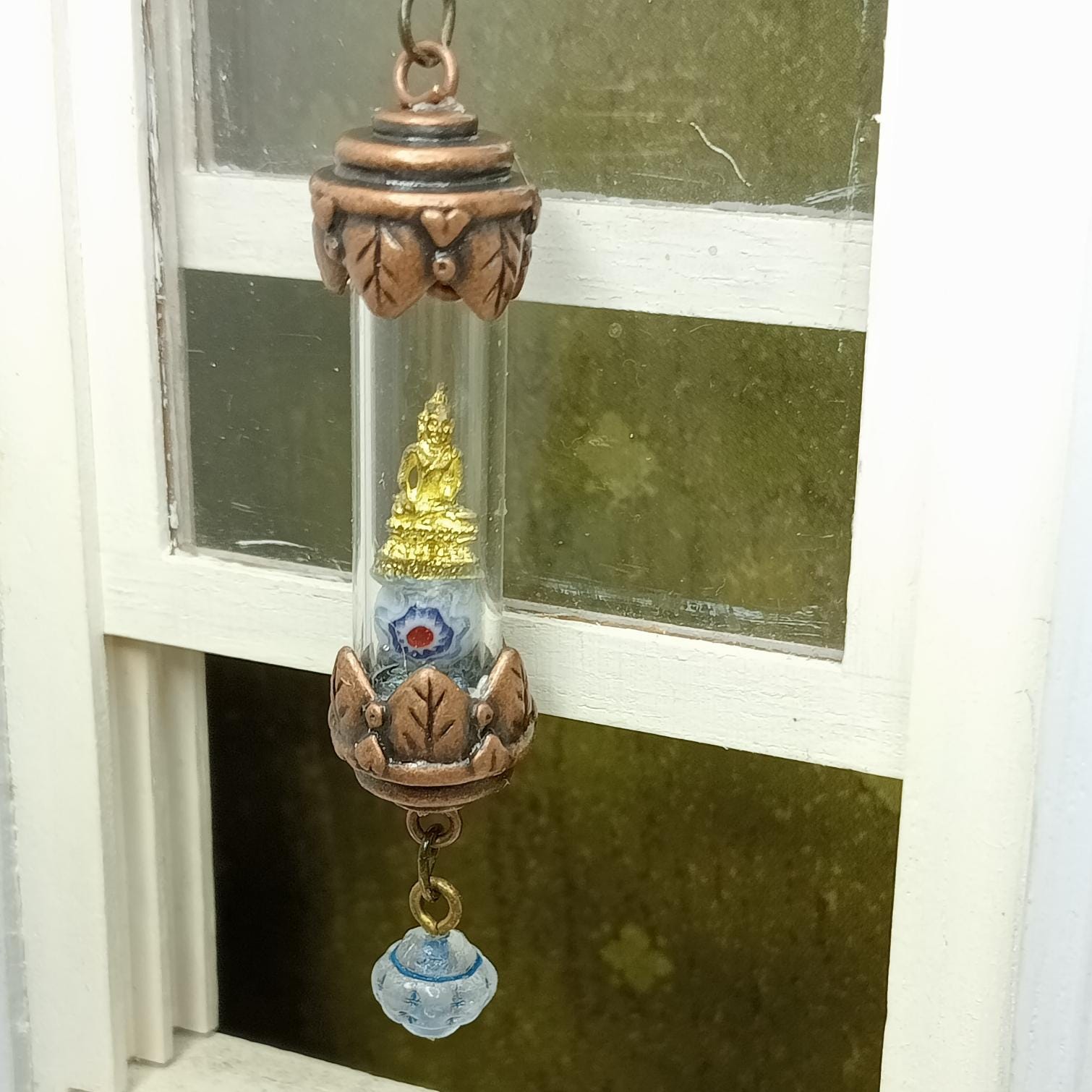 Deco 79 Carillon à Vent Bouddha En Métal Avec Perles De Verre Et