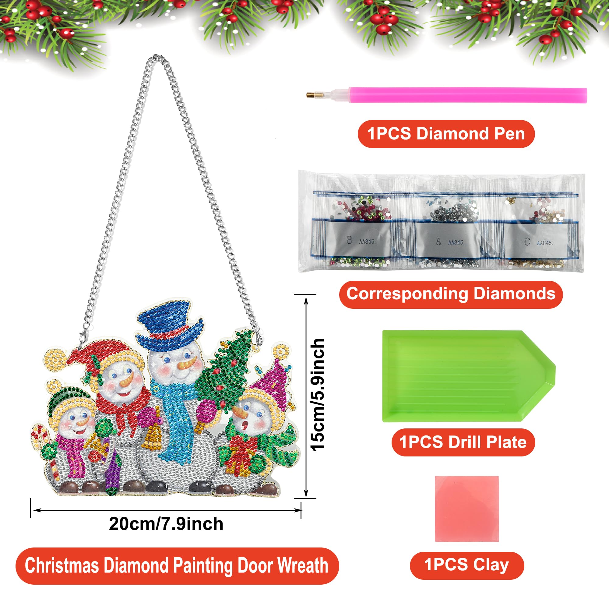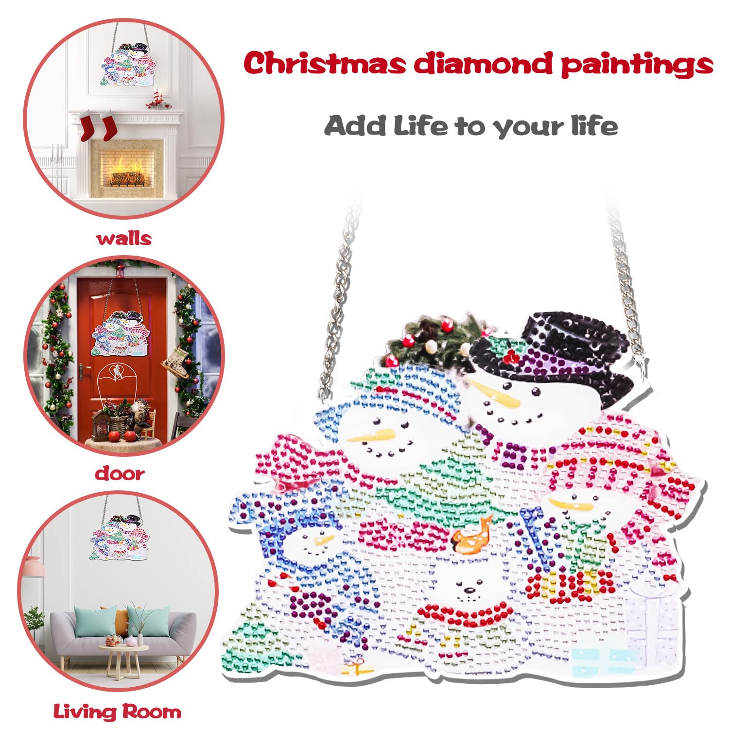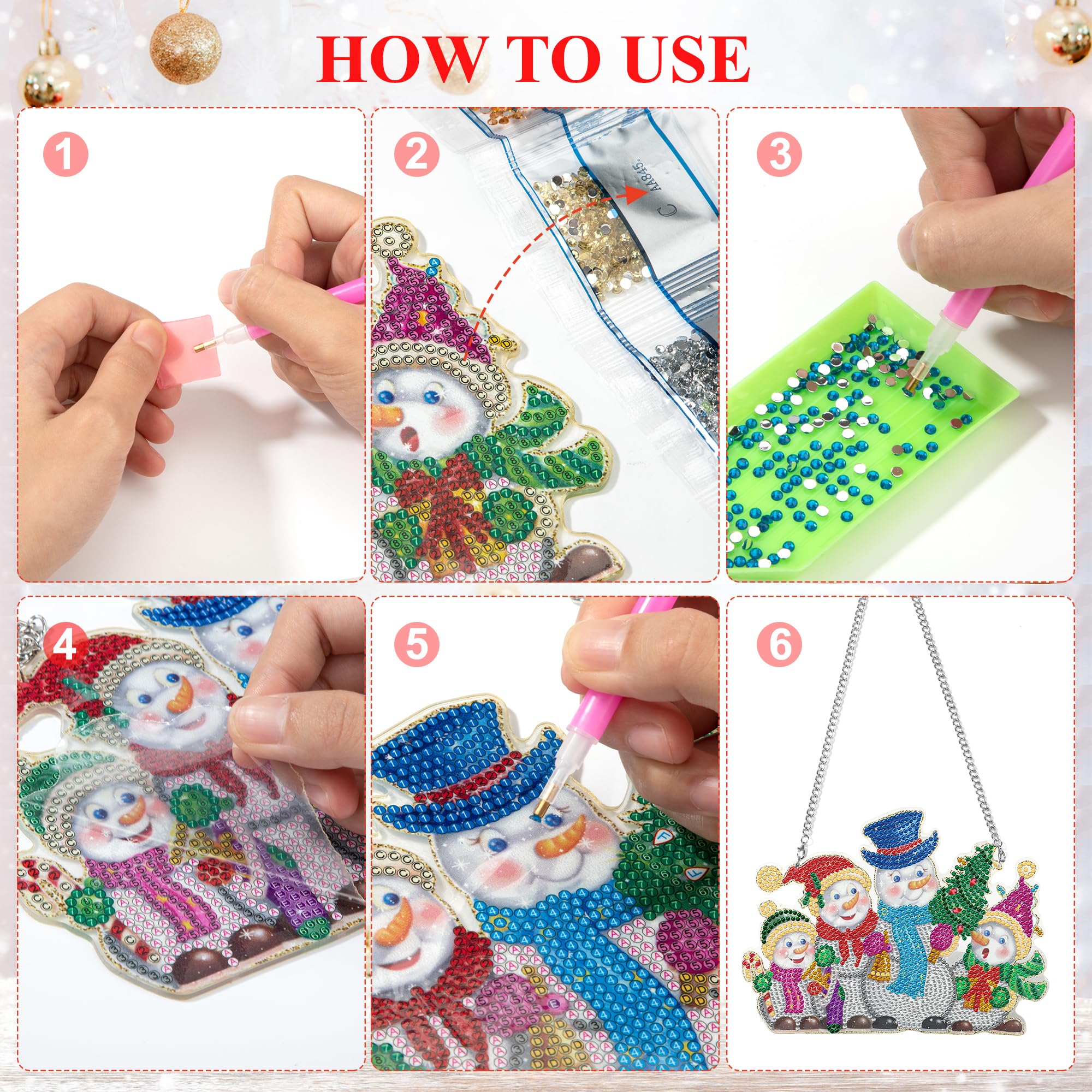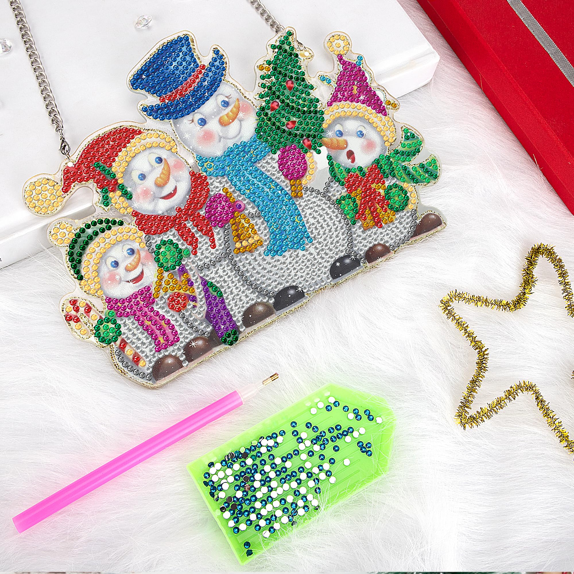 Les strass incrustés reflètent un éclat étincelant sous la lumière. Kit de peinture diamant 5D 10 pièces, ornements de Noël à Kit de peinture diamant pour décoration de porte, bonhomme de neige de Noël 5D strass en cristal à suspendre pour porte par numéro, décoration d'intérieur... La surface du panneau acrylique avec une forte adhérence, le diamant peut être étroitement collé à lui, pas facile à tomber. Créez des œuvres d'art exquises : Nos breloques de diamant de point de Noël DIY sont festives et vous permettent de créer de belles œuvres d'art pour décorer votre maison ou donner comme des cadeaux faits à la main. - Le pendentif peinture diamant est livré avec une chaîne de suspension, de sorte que vous pouvez facilement accrocher ces décorations peinture diamant sur les clôtures, les portes, les murs, les fenêtres et plus encore. C'est aussi un cadeau parfait pour vos enfants, vos amis ou vos parents à l'occasion de Noël ou d'un anniversaire. Cadeau de Noël créatif : Nos décorations suspendues de Noël dureront de nombreuses années, parfaites pour une utilisation sur les portes, les cheminées, les armoires, les murs et les fenêtres, fournissant une grande décoration pour votre maison ou votre bureau. - L'ornement de décoration de porte et de fenêtre suspendu est une façon magnifique et unique de souhaiter la bienvenue aux invités. Facile à utiliser : Il suffit de décoller le film transparent sur le pendentif en diamant et de coller le nombre correspondant de diamants sur le pendentif, un pendentif unique et beau pour tous les âges est complet. 9 Pcs Portes-Clés 5D Diamant Peinture Noël Keychain Pendentif DIY... Calendrier Diamond Painting Heveer Pendentif De Peinture Diamant 5D Noël Kit De Peinture Diamant à Suspendre Décoration Faite à La Main Pour Porte De Maison Bonhomme De Neige Kit Sapin De Noel Le paquet comprend : La décoration de peinture de diamant comprend 1 plaque acrylique, 1 chaîne, 1 paquet de diamants, 1 stylo de pointillage, 1 tampon adhésif rose, 1 plateau en plastique, taille d'environ 20 x 15 cm, vous pouvez l'utiliser pour décorer n'importe quel endroit de votre maison.