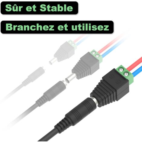 Genre du connecteur : femelle, mâle. Taille du port : 2,1 x 5,5 mm mâle + femelle., Tension : 12 V., Courant 5 A 3-36 V. Application : peut être utilisé pour une alimentation de 3 à 36 V, des connecteurs de 2,1 x 5,5 mm, une connexion de câble de vidéosurveillance, une extension de bande LED, une carte de bricolage, une caméra de sécurité, un balun vidéo. Connecteur d'alimentation 12V DC, 5.5mm 2.1mm, mâle Adaptateur Jack 6.35 âle vers 3.5 Feelle, POSUGEAR Casque Prise Adaptateur 6.35 3.5... Vis super serrée pour gérer des fils de calibre 16-26 AWG. Connectez l'extrémité du fil à un port de 2,1 x 5,5 mm. La couleur de l'article peut varier de celle de la photo, en fonction des paramètres d'affichage et de luminosité de votre ordinateur., Merci Connecteur adaptateur prise jack 12 V mâle + femelle 2,1 x 5,5 mm pour connecteur d'alimentation pour caméra de vidéosurveillance, bande LED 5,5 2., 1 adaptateur Caractéristiques : produit de haute qualité. Meilleur choix pour les bandes lumineuses LED, les caméras de vidéosurveillance, la connexion audio et vidéo. Remarque : les mesures étant prises à la main, les tailles indiquées peuvent varier de 0 à 1 cm. Câble D'alimentation Mâle Femelle 12V, 5 Pièces, Connecteur De Câble Pour Caméra De Vidéosurveillance, 5.5x2.1mm, 5x2.1 - Historique Des Prix Et Avis | Vendeur AliExpress - SANDOMEY Store Utilisation facile : installation de caméra plus facile, gain de temps et connexion de câble plus sûre. Connecteur d'alimentation 12V DC, 5.5mm 2.1mm, mâle femelle, adaptateur Jack pour Terminal de bande LED, câble de caméra de sécurité CCTV, 1 pièce ; Livraison · 2... Les connecteurs mâle 12V DC prise Jack femelle connecteur adaptateur de câble d'alimentation 26cm de longueur 5,5 x 2,1 mm pour caméra de vidéosurveillance,Trouvez les Détails sur 12V DC Câble jack mâle, 12V DC prise Jack femelle Câble de Les connecteurs mâle 12V DC prise Jack femelle connecteur adaptateur de câble d'alimentation 26cm de longueur 5,5 x 2,1 mm pour caméra de vidéosurveillance - Shenzhen Acedo Electronics Technology Co., Ltd Cette caméra de vidéosurveillance pour connecteur d'alimentation fournira une excellente connexion. Merci de ne commander que si vous acceptez cette marge d'erreur. C'est une solution parfaite pour ceux qui veulent fabriquer un câble d'alimentation personnalisé. Pour prise d'alimentation avec construction en plastique et serre-tension. Taille : mâle environ 36 x 14 mm, femelle environ 37 x 14 mm., Poids : environ 14 g.