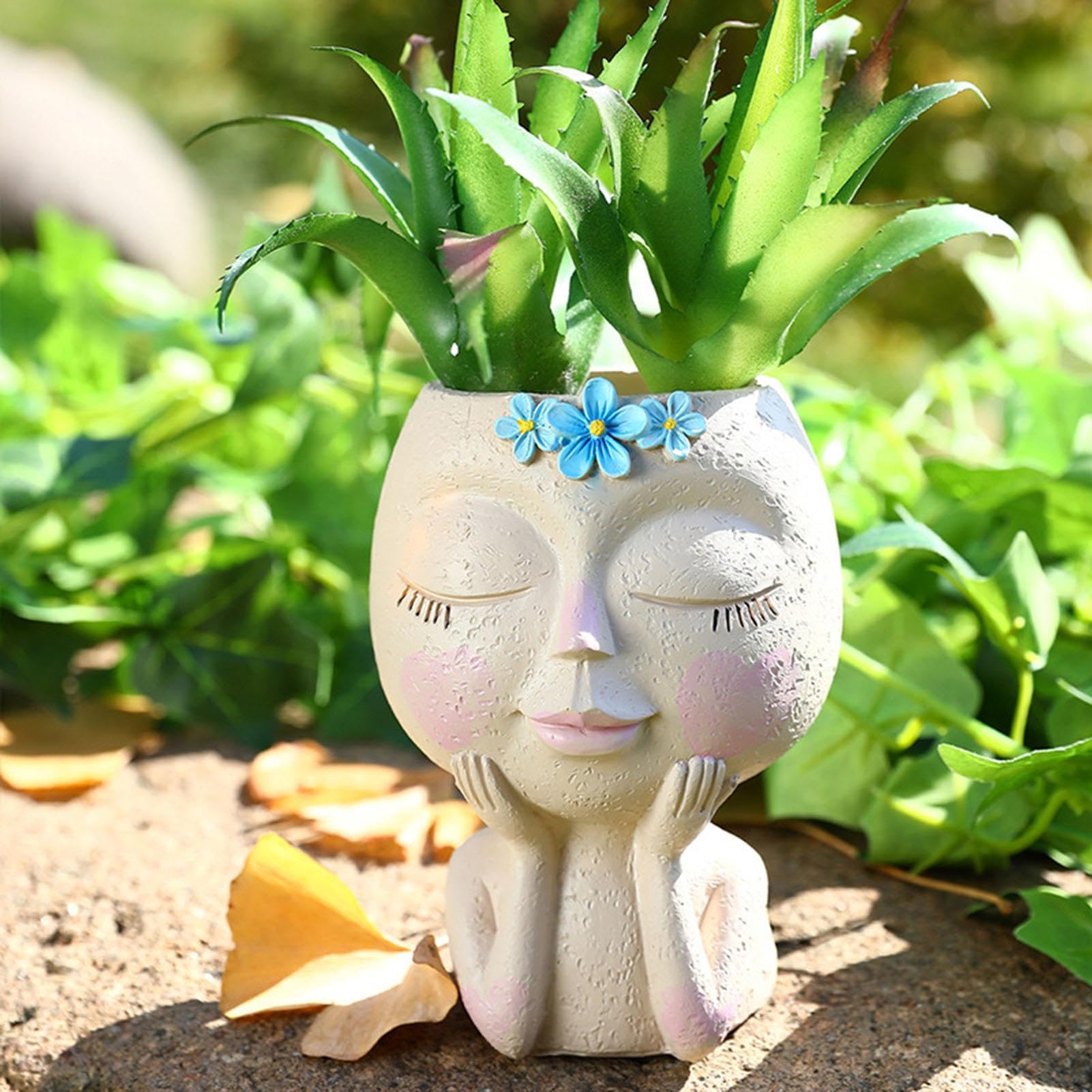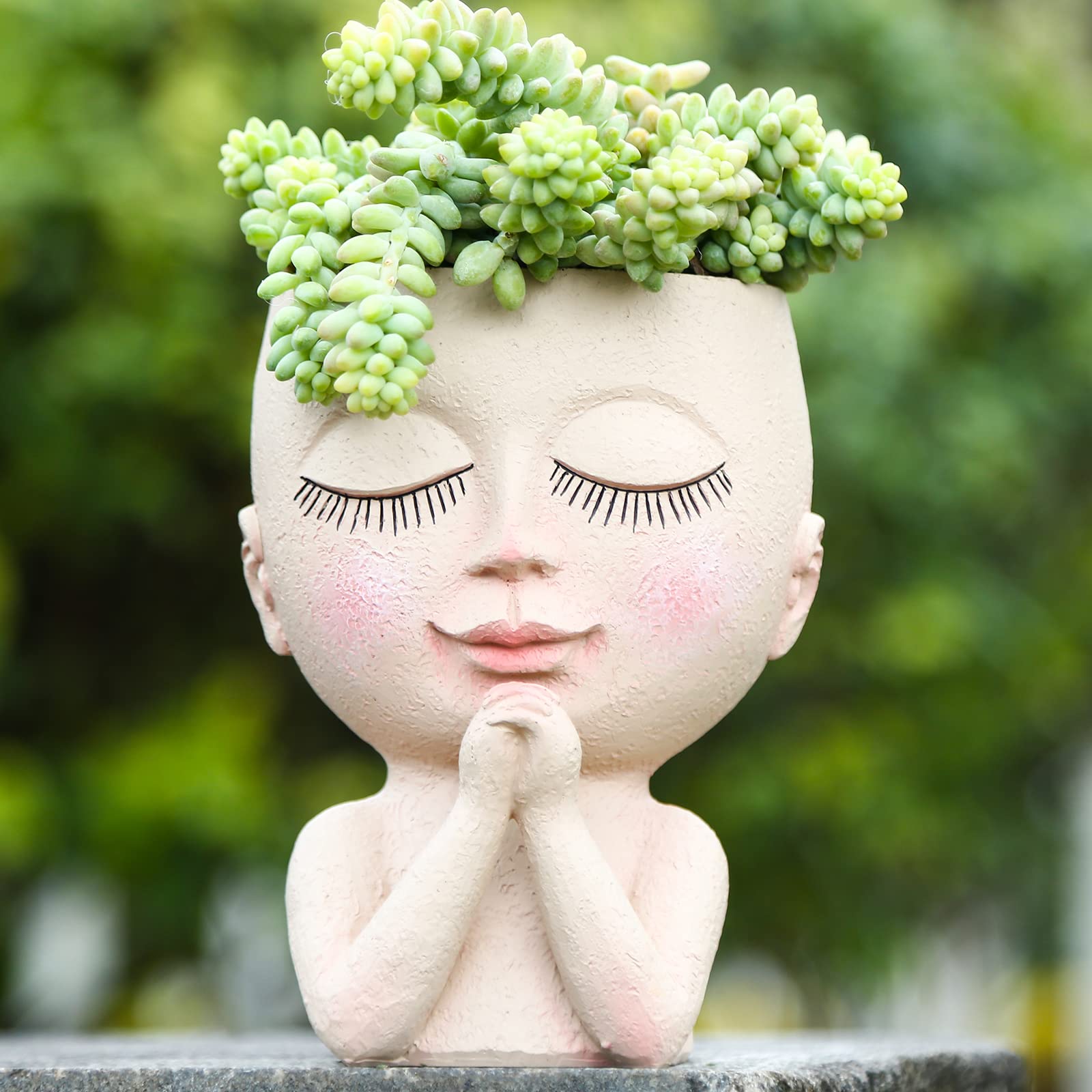 VASE,2--Pot de fleur en résine pour filles, Figurine tête de visage Caractéristiques : 1., Le pot de fleurs pour fille est fabriqué en résine de qualité supérieure et durable. Les trous sont mesurés de manière appropriée, de sorte que le sol est moins sensible aux fuites. Design intéressant : vous pouvez faire pousser différentes plantes dans le pot de fleurs Head Flower pour créer différents styles pour vos filles et créer facilement une atmosphère romantique émotionnelle. Pot De Fleur Rigolo Pot De Fleur - HOMYL - Vase Visage - Résine - 13x21 Cm - Décoratif Gris - Jardin Pot De Fleurs Avec Tête Remarque : En raison des effets de lumière et de l'angle de prise de vue, il peut y avoir une différence de couleur dans le produit, merci de votre compréhension. Matériau de haute qualité : le joli pot de fleurs pour filles est fabriqué en résine peinte à la main de haute qualité, durable et résistante à la décoloration, de sorte que vous n'avez pas à vous soucier qu'il se décolore au soleil ou à la pluie, même lorsqu'il est placé à l'extérieur. En raison de la mesure manuelle, il peut y avoir une marge d'erreur dans la taille du produit. Matériau : résine Poids : environ 450 grammes. Caractéristiques : Dimensions : environ 12 x 8,5 x 18,5 cm. Anges Planteur Anges Statue Tête Visage Pot De Fleur Mini Vase Pour Plantes D'Intérieur... Créez facilement une atmosphère romantique émotionnelle., 3., De petits trous au fond permettent à l'excès d'eau de s'écouler lorsque les plantes sont arrosées et que le sol est humidifié.