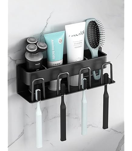 Taille du produit: 21,5x7,5x10,5 cm Matériau: Fer Couleur: Noir Poids du produit: 345g 🚀 Gain d'espace et efficacité : Support mural pour brosse à dents de taille compacte (21,5x7,5x10,5 cm), idéal pour les petits espaces et un environnement de salle de bains propre. Gain d'espace et élégance : Le porte-brosse à dents mural mesure 21,5x7,5x10,5 cm, parfait pour les petits espaces. Support pour gobelets intégré pour une organisation complète des articles d'hygiène. Porte Brosse A Dent Electrique sur Installation/pas de perçage nécessaire : ce support mural pour brosse à dents dispose d'un design perforé avec un dos adhésif puissant. · Design compact et... Porte Gobelet Salle De Bain YYBO Porte Brosse à Dents Mural, Support Brosse A Dent Electrique Sans Perçage, Support De Tête De Brosse à Dents Electrique Pour Salle De Bain ( Noir, Petit Support Brosse A Dent My Variation 🔍 Grande capacité : Place pour 3 brosses à dents et 2 grands tubes de dentifrice, parfait pour une utilisation par plusieurs personnes. Design polyvalent et utilisation étendue : Non seulement pour organiser les brosses à dents et les dentifrices, mais aussi les rasoirs, les dispositifs de nettoyage du visage et plus encore, la conception à plusieurs compartiments aide à maintenir les objets bien rangés. Structure robuste : Fabriqué en fer de haute qualité, durable et résistant à la rouille, tandis que le support adhésif transparent assure une adhérence forte et sans résidus. 💡 Design polyvalent : En plus des articles de soins dentaires, il est possible de ranger soigneusement également des rasoirs, des nettoyants pour le visage et d'autres objets, grâce aux différents compartiments pour une organisation claire. Installation sans outil : Ce porte-brosse à dents mural est léger et facile à installer, l'installation sans perçage simplifie considérablement les étapes d'installation, tout en protégeant vos murs.