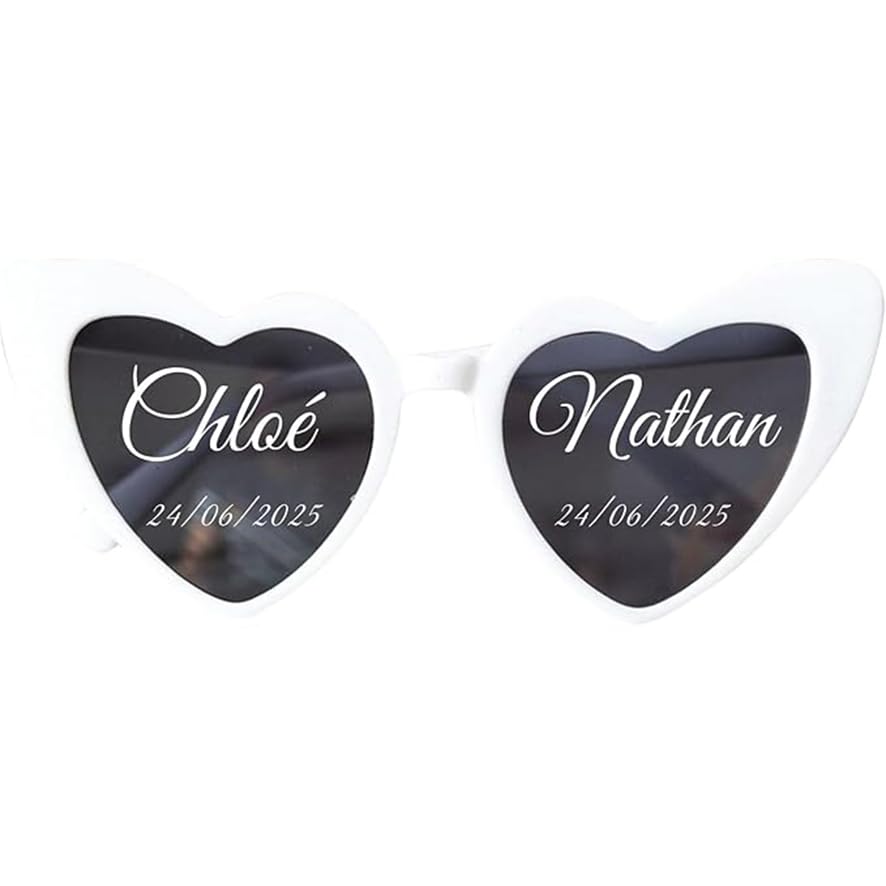 Nos lunettes : rétro en forme de cœur sont fabriquées avec des matériaux PC de haute qualité. Les charnières en métal solide renforcé assurent une ouverture et une fermeture fluides. Les dimensions exactes sont indiquées sur la photo. Nos lunettes : rétro en forme de cœur sont fabriquées avec des matériaux PC de haute qualité. Il est confortable à porter. Les charnières en métal solide renforcé assurent une ouverture et une fermeture fluides. Le support nasal intégré est très léger et vous offre une expérience confortable Cadre Couple Personnalisé Sélection De Lunettes De Soleil Spécial Mariage | Sunglass Hut Cadeau Mariage Une excellente idée cadeau. Nous les recommandons également à un groupe plus large. Lunettes personnalisées 2 prénoms - Boréo Surprenez tout le monde avec votre look unique ! Avertissement De Sûreté À utiliser occasionnellement, pour un usage quotidien, retirez les autocollants Le support nasal intégré est très léger et vous offre une expérience confortable. Nos verres et sous-verres dépoli haut de gamme auront fière allure sur la table d'honneur pour le grand jour, avec différentes options de couronnes disponibles... Plusieurs couleurs au choix. Nos lunettes de soleil sont conçues avec le plus grand soin, alliant style et praticité pour vous offrir un accessoire à la fois tendance et fonctionnel. Offrez-vous et à vos proches un souvenir mémorable et pratique avec nos lunettes de soleil personnalisées. Couleur du verre noir. Décoration parfaite : ces lunettes de cœur sont une décoration très idéale pour un mariage, un enterrement de vie de jeune fille, une fête de nuit, des fêtes et des célébrations, des spectacles de théâtre, Halloween, carnaval, Noël, etc. Couleur du texte : blanc. Vous pouvez les offrir pour toutes les occasions. ►►► EXPÉDITION PAR COURRIER EXPRESS EN 24/48H gesch