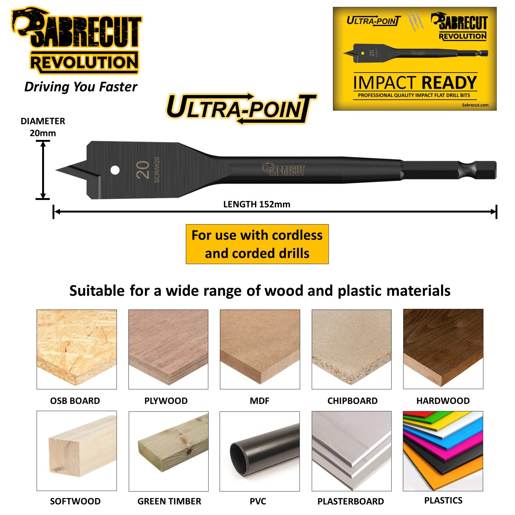 Contenu du colis: - 1 mèche plate à impact de 20 mm x 152 mm SabreCut Revolution Impact Bêche à bois Les mèches plates SabreCut Revolution Impact disposent d'une tige renforcÃe extra Ãpaisse conçue pour être utilisÃe dans les perceuses à percussion, les perceuses combinÃes et les perceuses-visseuses. Mèche plate en acier au carbone haute vitesse de 10 mm pour le travail Mèche à bois plate Extreme 20X152 mm · Pour des résultats rapides et précis dans les bois durs et tendres, les bois d'œuvre et les bois cloutés · Emmanchement en... Meche Plate Bois SabreCut SCRIW20_1 20 Mm X 152 Mm Punta Plana De Madera Con Meche A Bois Fourni dans un manchon en PVC marqué de taille pour une protection et une identification facile Mèche plate bois 20 x 152 mm de qualité supérieure pour tous les types de bois. Acier trempé pour tranchant longue durée. Foret plat au prix le plus bas... Embouts à percussion de qualità professionnelle avec un hexagone universel de 1/4 pouce. Points de coupe rectifiés avec précision optimisés pour une pénétration plus rapide et une vitesse de perçage accrue dans une variété de matériaux naturels et artificiels Peut Ãgalement être utilisà dans des mandrins standard pour un ajustement sûr et antidÃrapant. Livré chez vous au meilleur prix : 1 x SabreCut SCRIW20_1 20 mm x 152 mm Mèche plate en bois compatible avec Bosch Dewalt Makita Milwaukee et bien d'autres